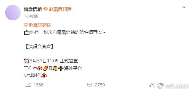 赵露思演唱会官宣节奏 赵露思演唱会官宣节奏有好期待和舞台上的露思见面呀,不知道这