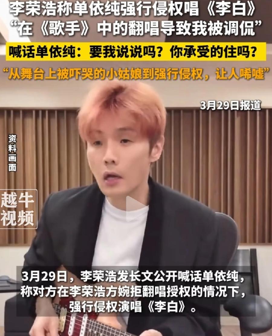 单依纯与李荣浩互撕,就是炒作!二人本来就认识很多年,翻唱一首歌而已,侵权可以维权,至于闹掰成仇人?关键是单依纯一夜成名,现在曝光度、知名度暴增!全网皆知!以前几个人认识单依纯?不过有一说一,单依纯的李白,翻唱得比李荣浩好听,看这场闹剧如何收场。