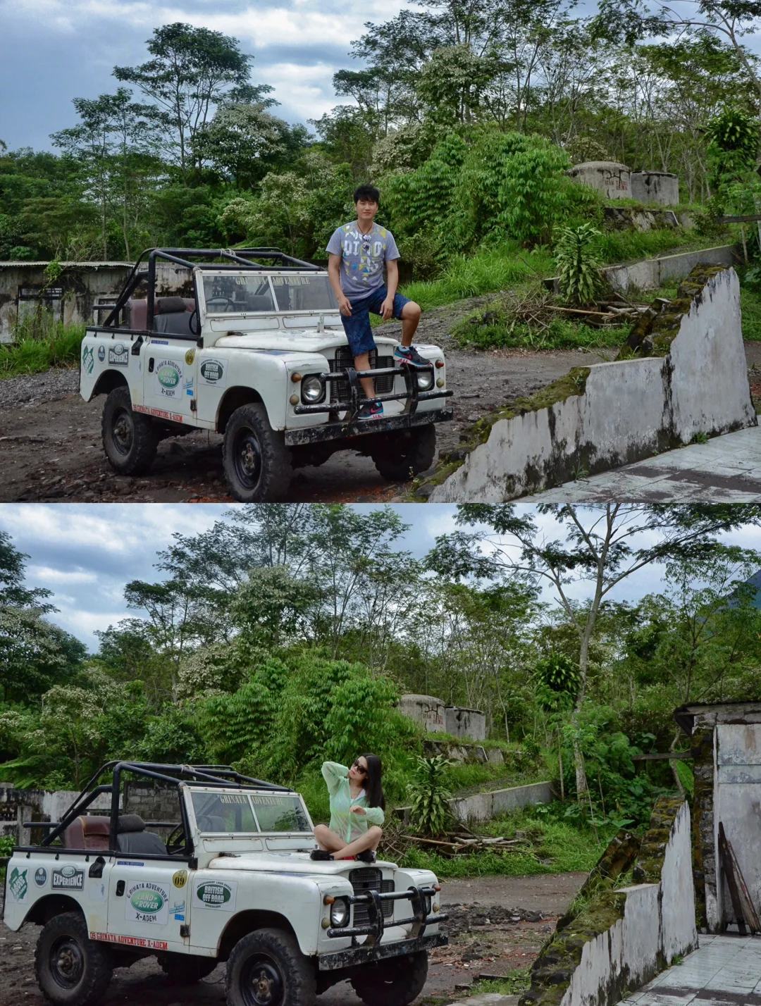 不用特种兵式通宵爬山太舒服了,到山脚就可以租吉普车,还是那种狂野的框架车,在山中崎岖不平的道路上越野非常刺激,而且几乎没有几个游客!!!山中有一座根据村民院落改建的火山遗址,有很多火山灰,残垣断壁、沧海桑田,在大自然面前的渺小感油然而生。