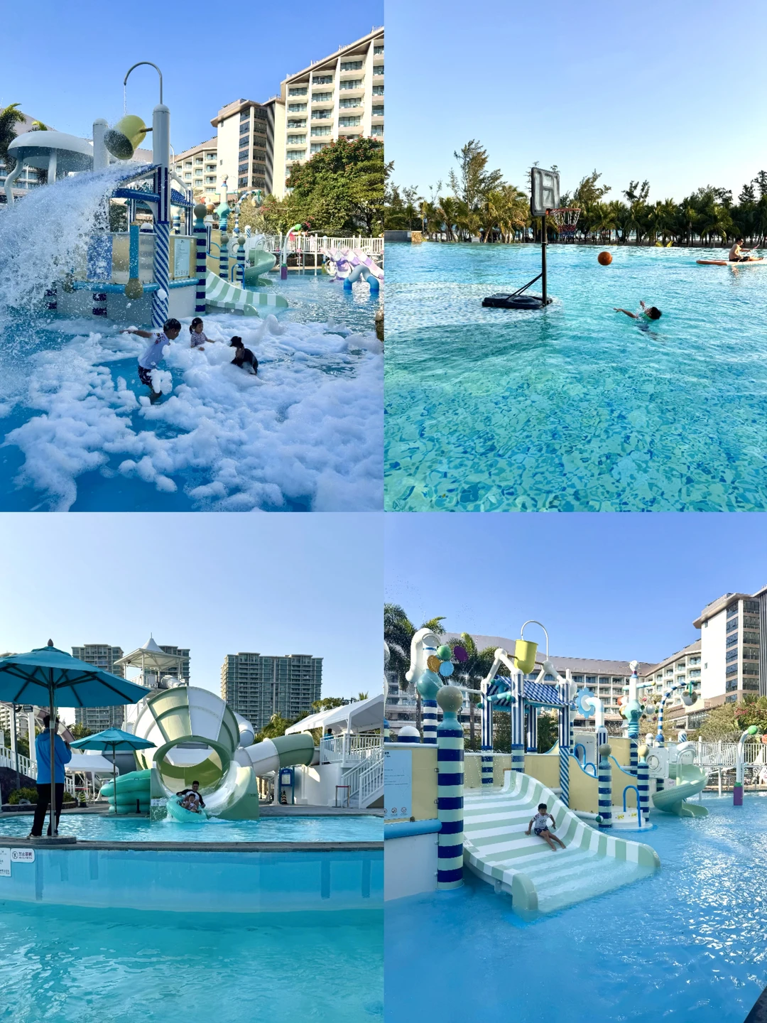 这次住的威珀斯,就在清水湾沙滩上,酒店有两个儿童水上乐园,两个主泳池,浆板、水上玩具都提供;建议选带泳池的房间,特别是空中泳池房;自助餐的刺身、火锅、甜点,好吃不贵;亲子活动丰富,除了几千平的🆓儿童乐园,还有猫猫馆、小象动物公园,遛娃方便!