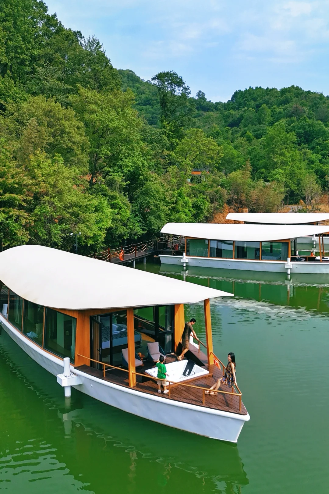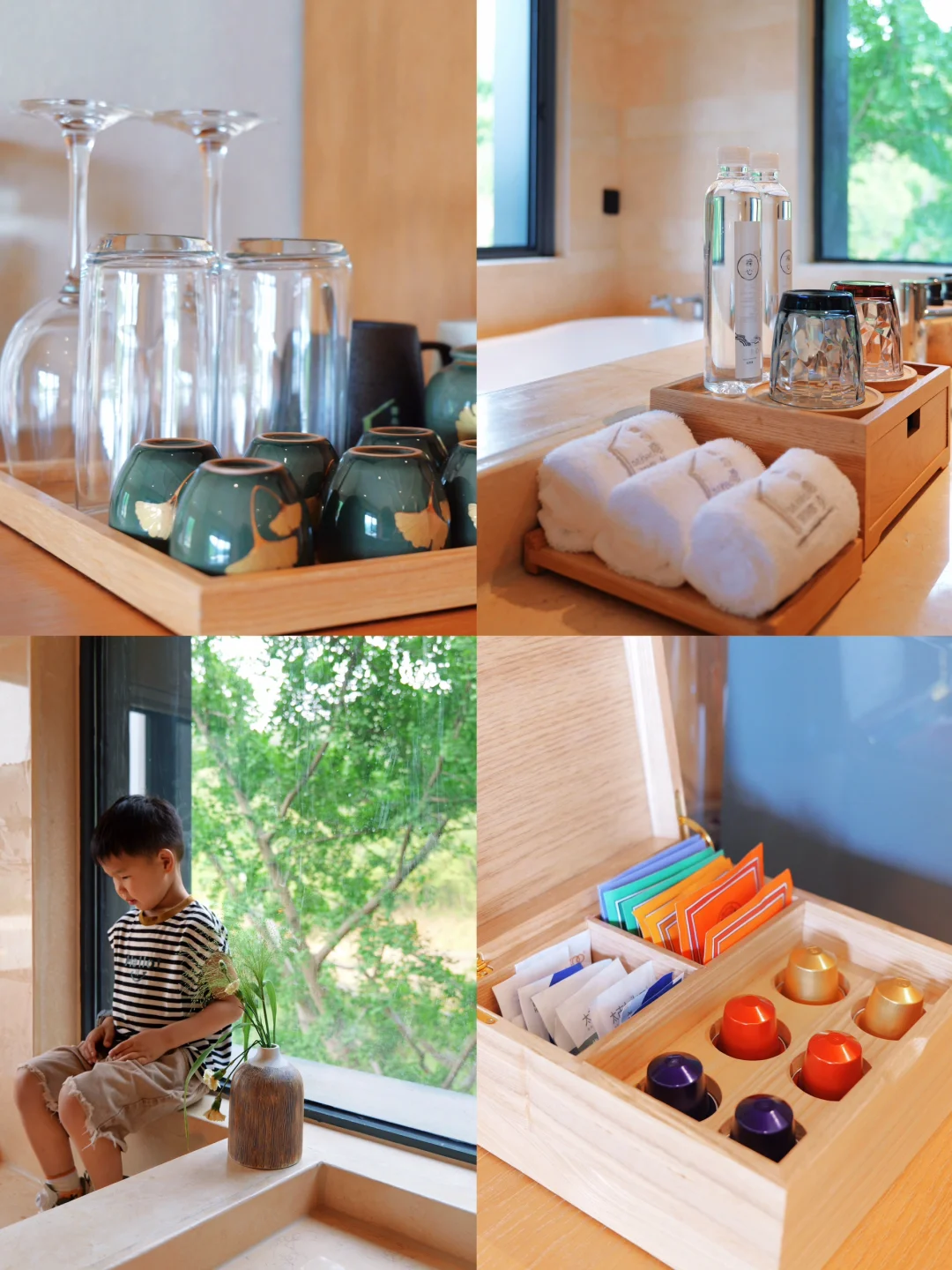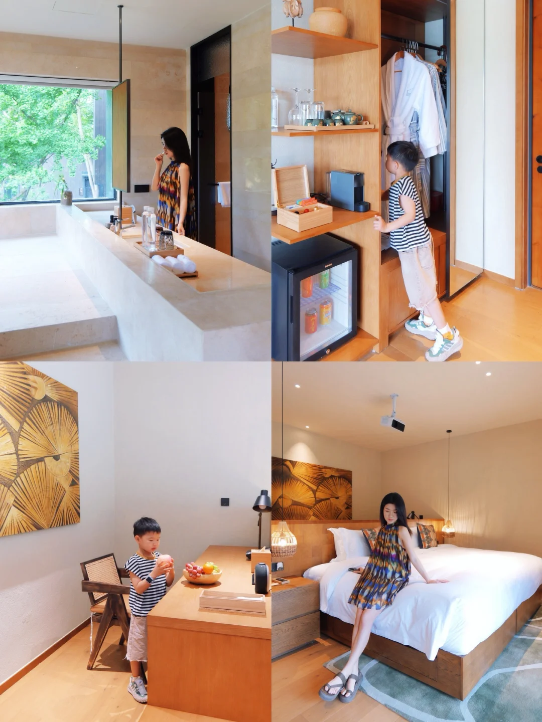 🏨房型:树屋、船屋、湖畔别墅、林间别墅,满足不同人群的需求,这次带娃住的树屋,船屋没预定上,但上去参观了,孩子特别喜欢。不得不夸房间内的品质感满满,纸巾折的角度、欢迎水果的新鲜度、水吧台的丰富度…细节都做的很到位。