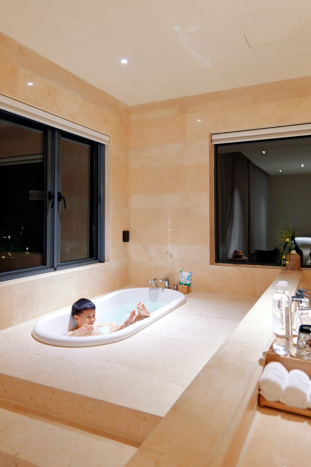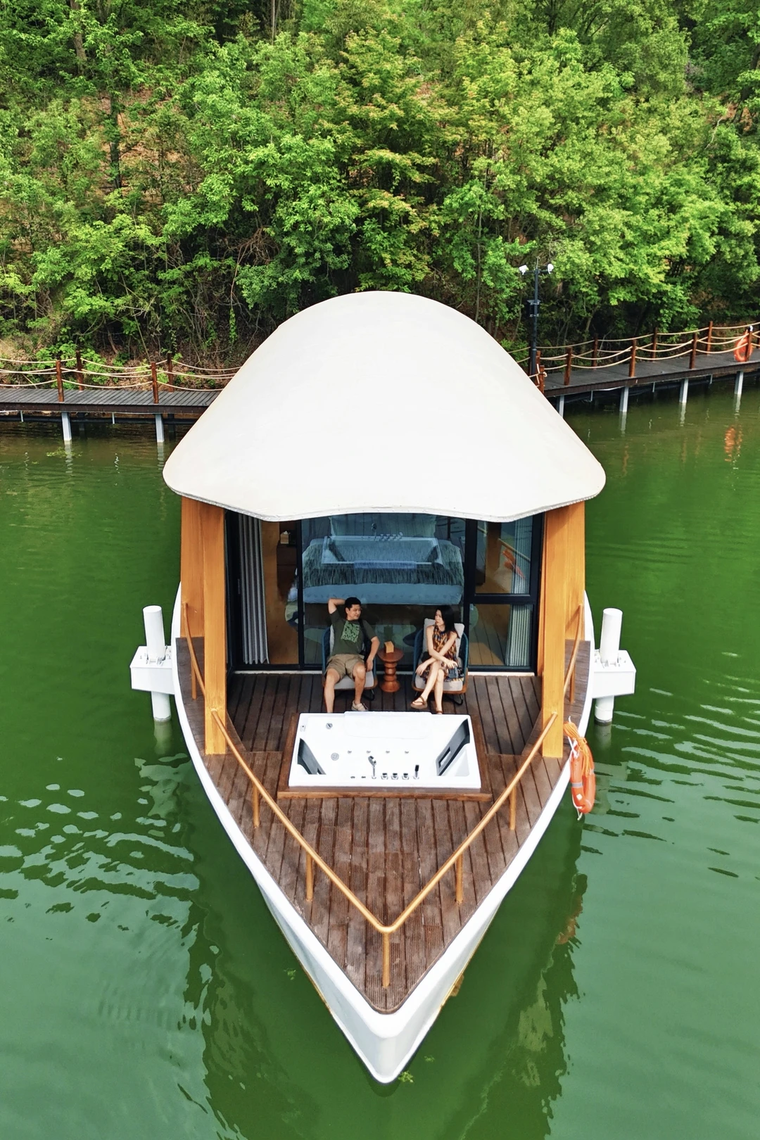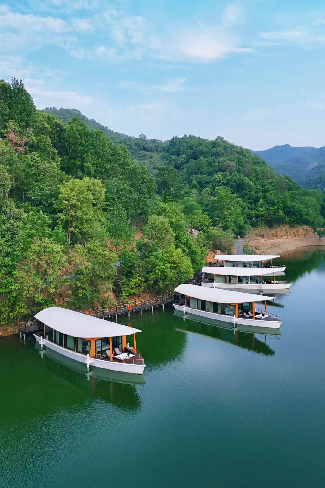🏨房型:树屋、船屋、湖畔别墅、林间别墅,满足不同人群的需求,这次带娃住的树屋,船屋没预定上,但上去参观了,孩子特别喜欢。不得不夸房间内的品质感满满,纸巾折的角度、欢迎水果的新鲜度、水吧台的丰富度…细节都做的很到位。