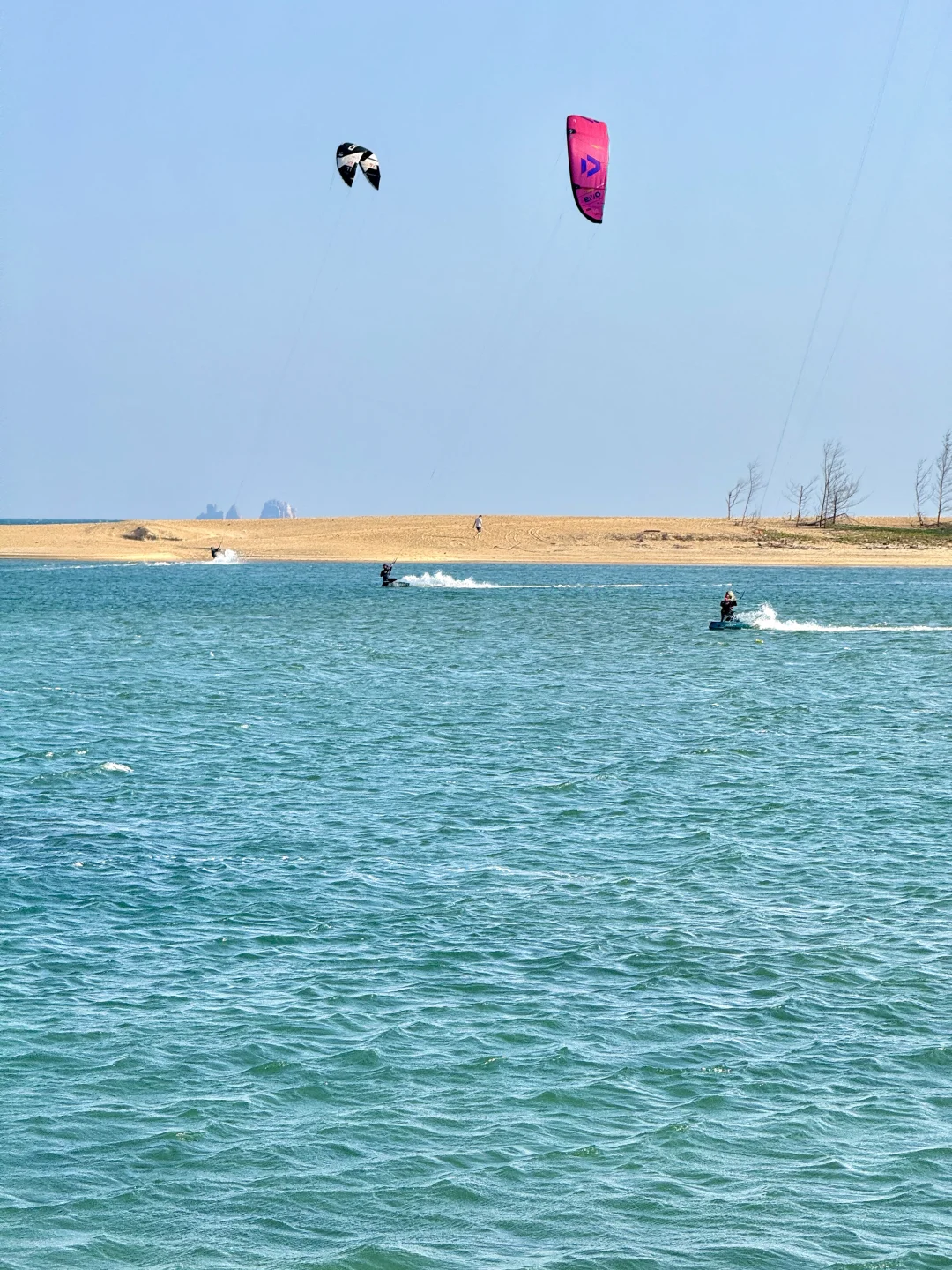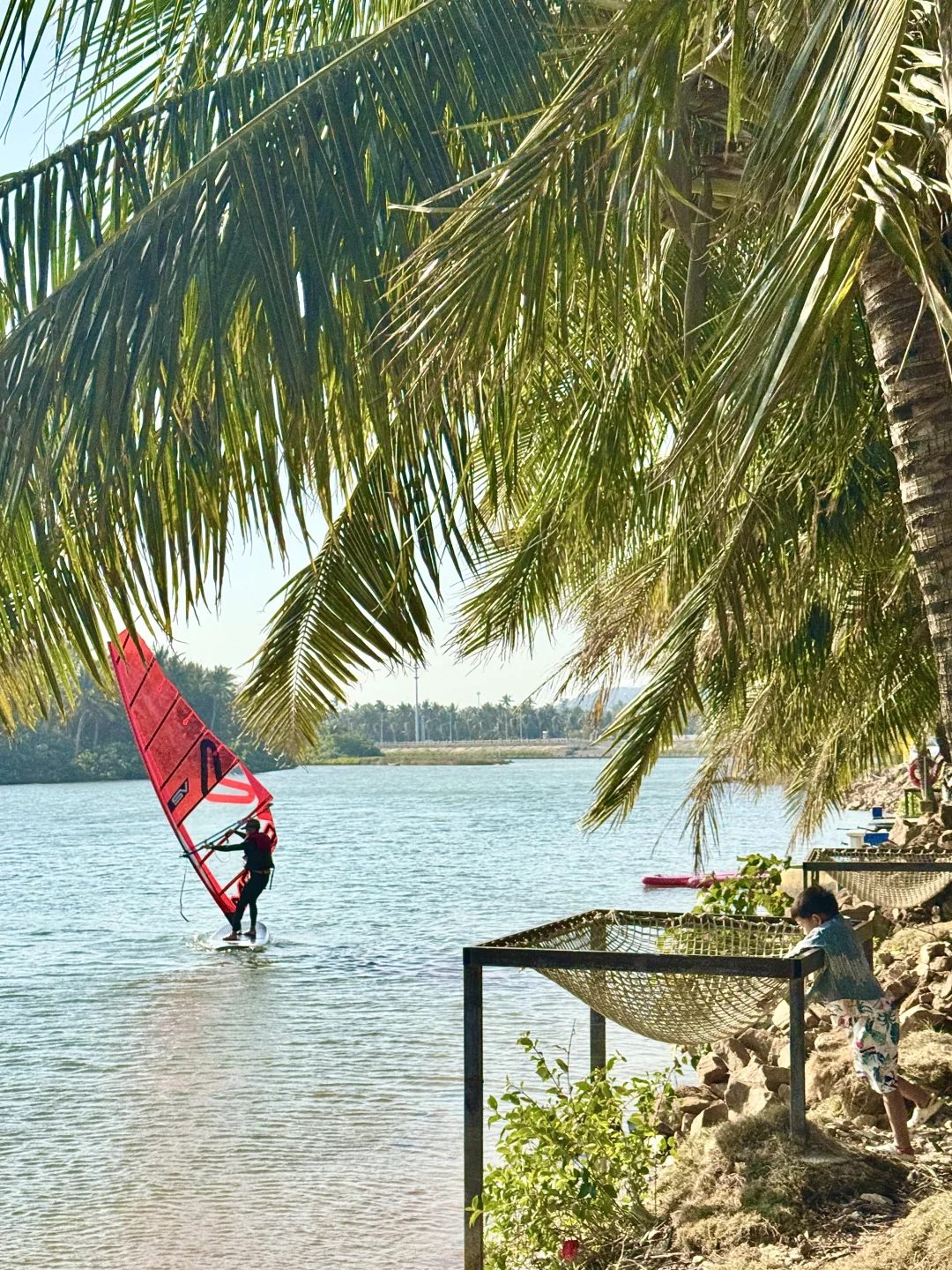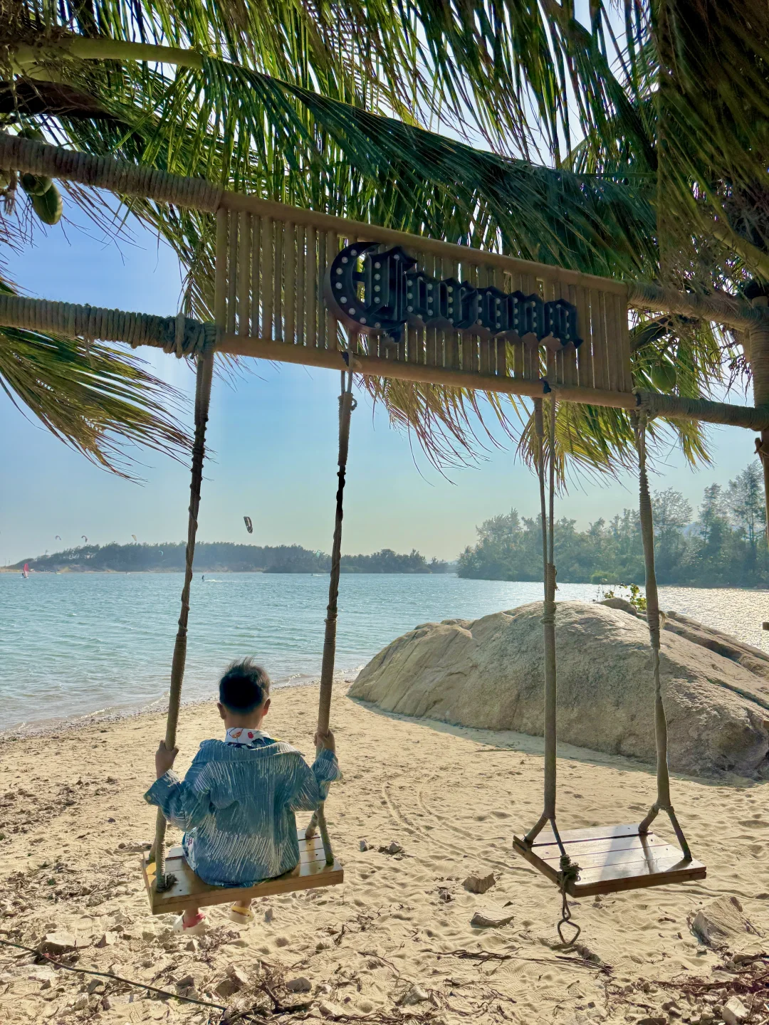 3️⃣沿着沙滩往🥥椰子岛方向走就是无人小岛,不仅能看到拖尾沙滩,还有酷炫的风筝冲浪,岛上的秋千、网兜、躺椅都免费