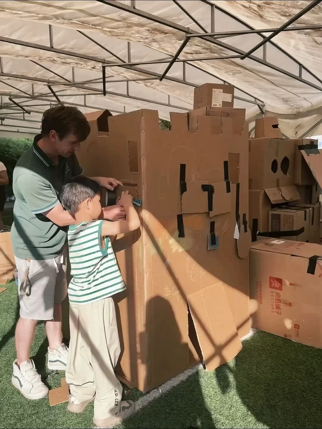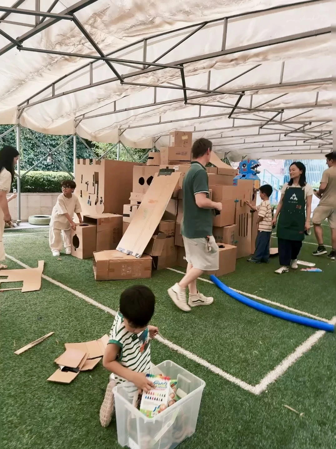 📝除了参观全园、品尝厨房手工制作的糕点、和老师们沟通育儿的知识以外,孩子们竟然在外教课程搭建了一座豪华的纸箱城堡,这次探园的体验感太好啦,期待木木未来的幼儿园生活!