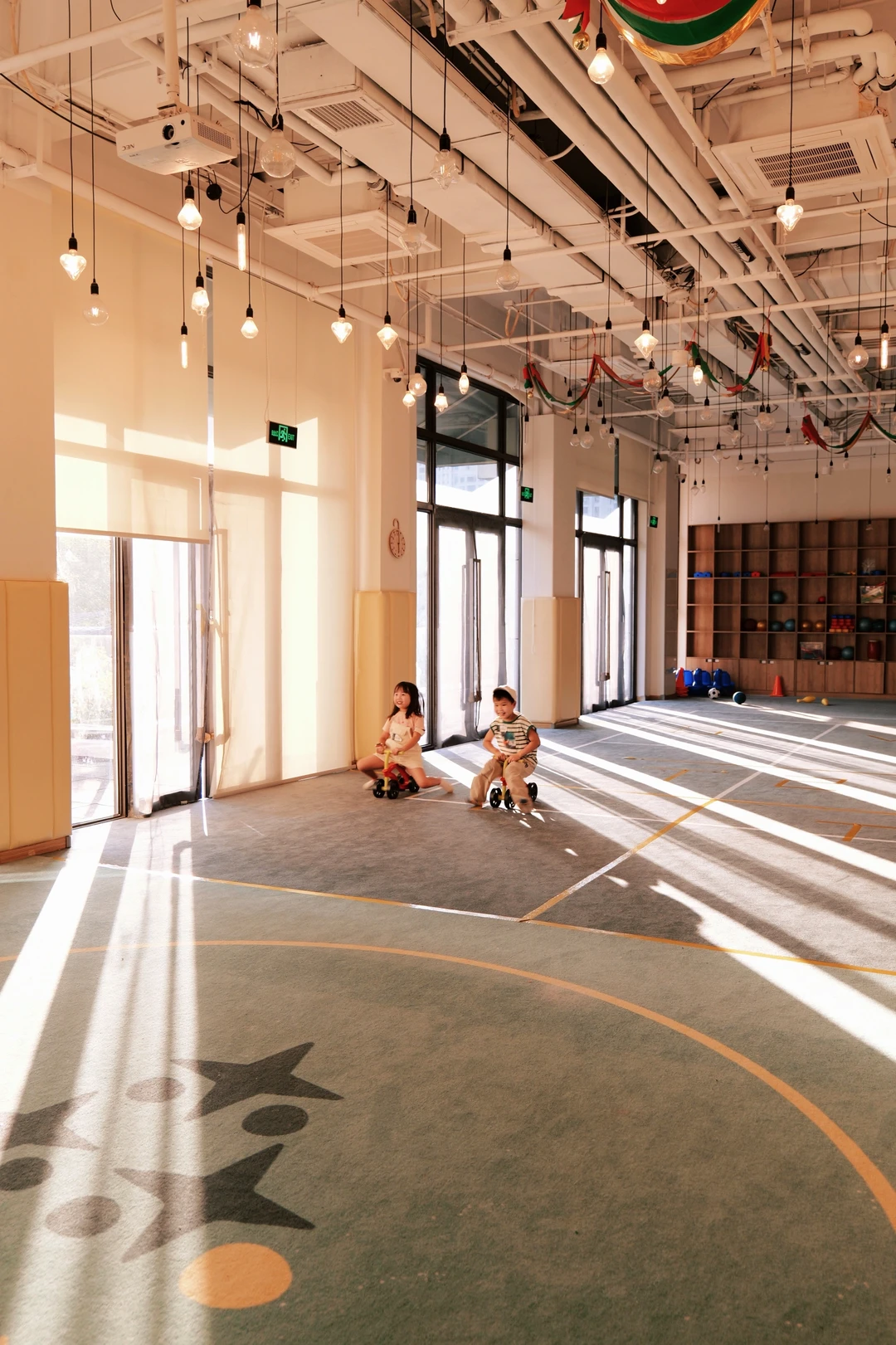 3、不插电教室,教室里是没有电视机的,空间大、分区合理、整洁明亮,还有专门的室内运动场。