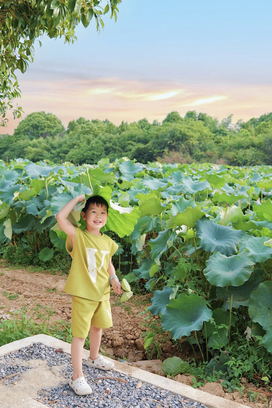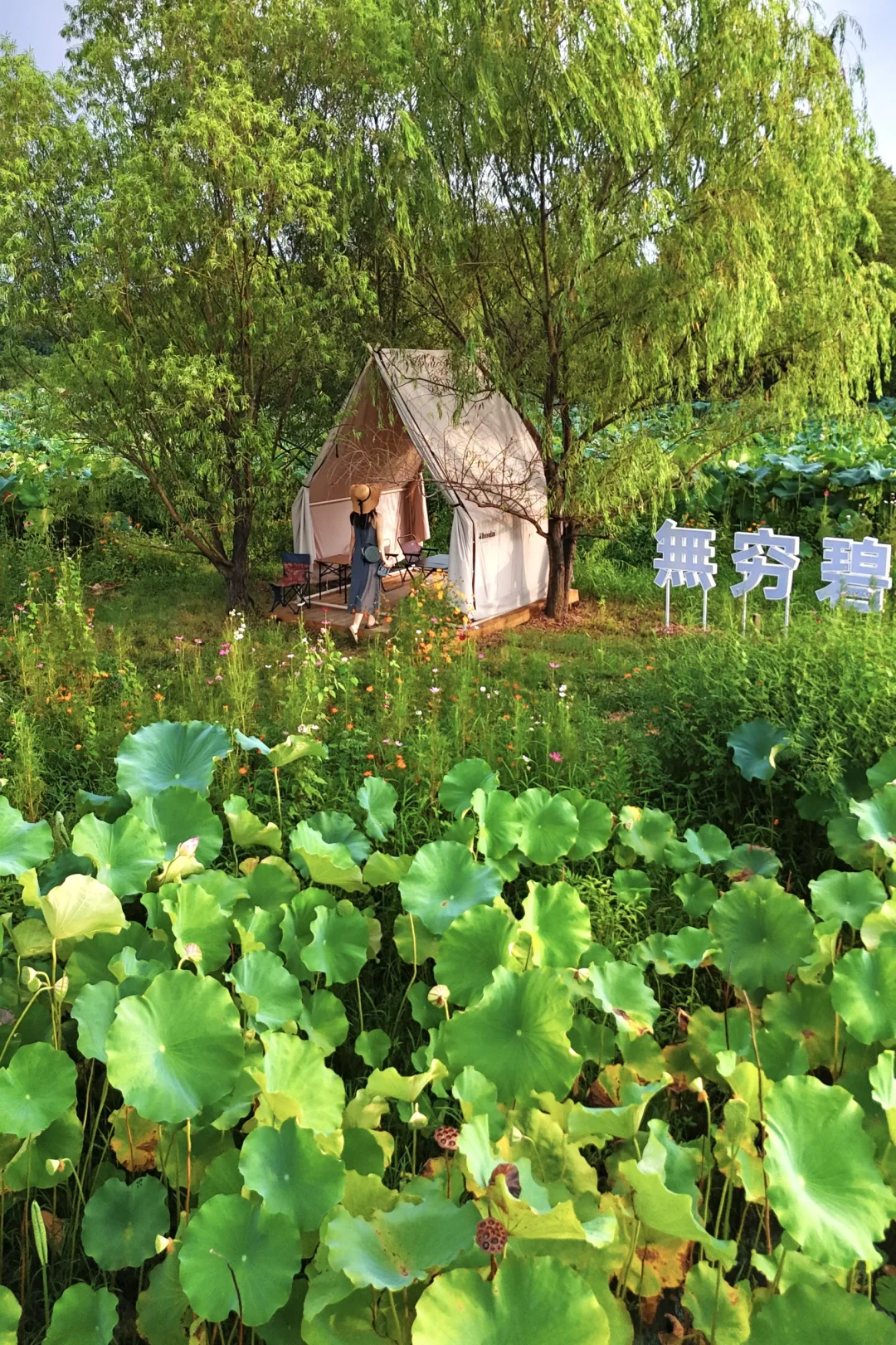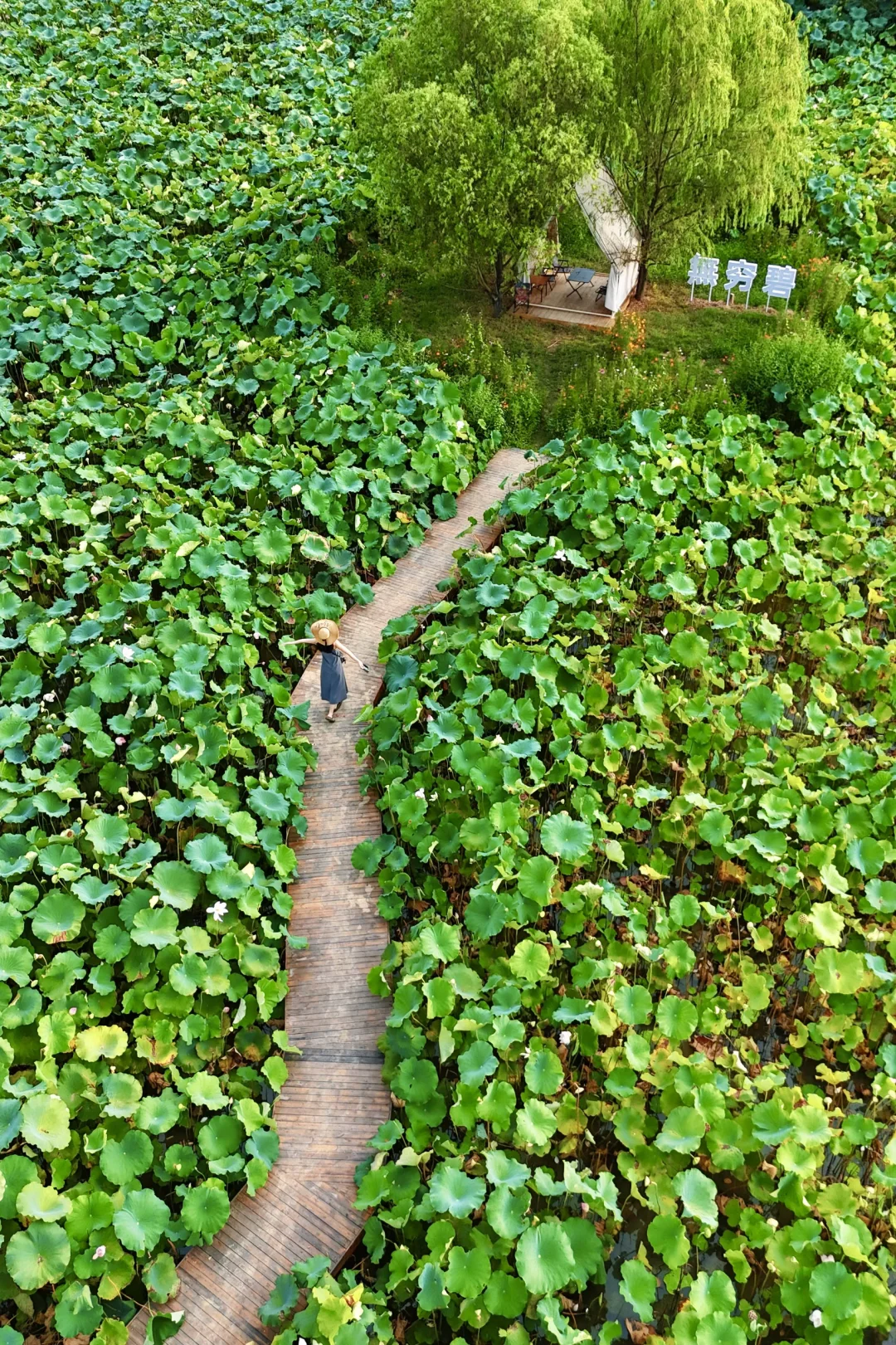 现在正是荷花盛放的尾声,一整片无边荷塘+凉亭步道,怎么拍都像闯进莫奈的画里,建议穿汉服或浅色裙子。
