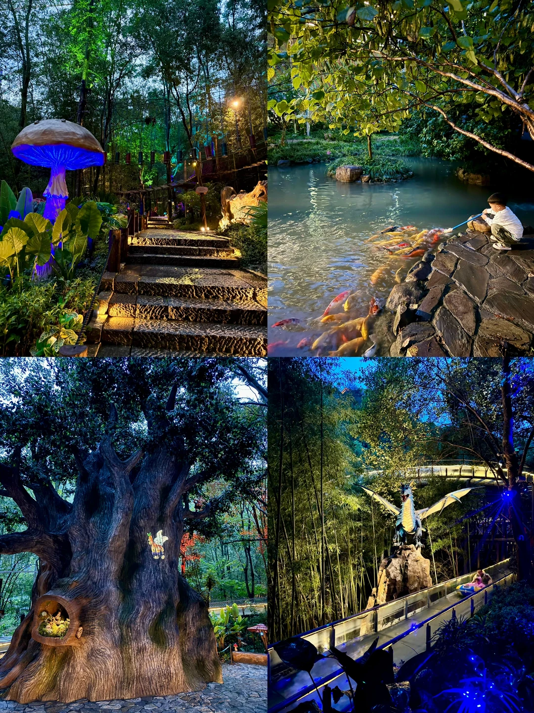 扣扣飞车和玻璃漂流有多好玩不用再说了,这里暑假还开放了避暑夜游!!奇幻森林的灯光真的太美了!!我们漂流的时间刚好天黑,穿越整个五彩斑斓的童话世界,小孩一直哇哇哇,漂流结束还去玩了很久,满足了童心!!