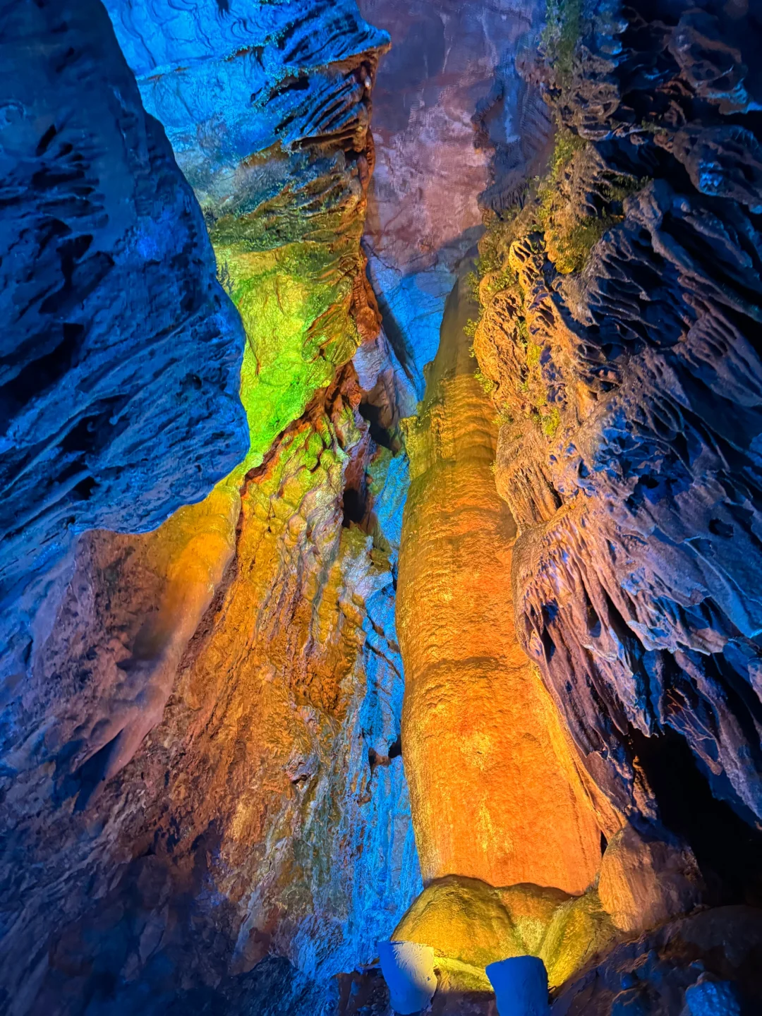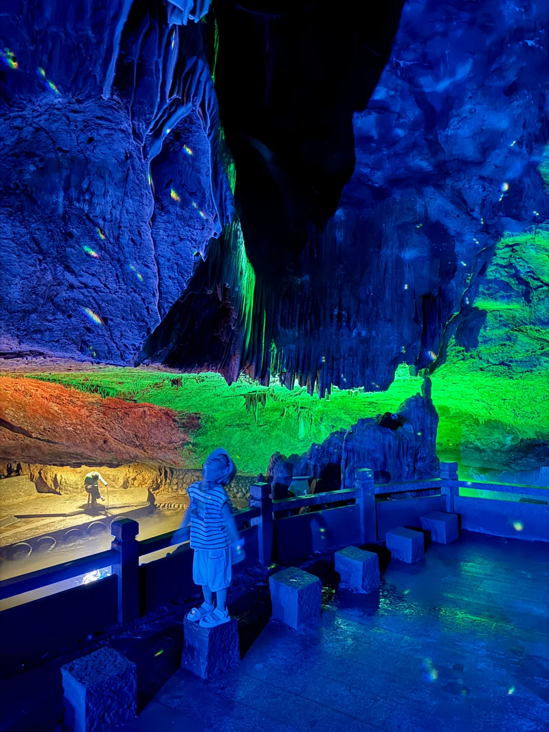 🗺️路线:有A和C两条线路,常规A线进门右转坐船进溶洞,如果发现排队比较久不用犹豫,直行走C线,跟着标识很清晰,走路会比A线多一点,我们去的这天下雨人不多。