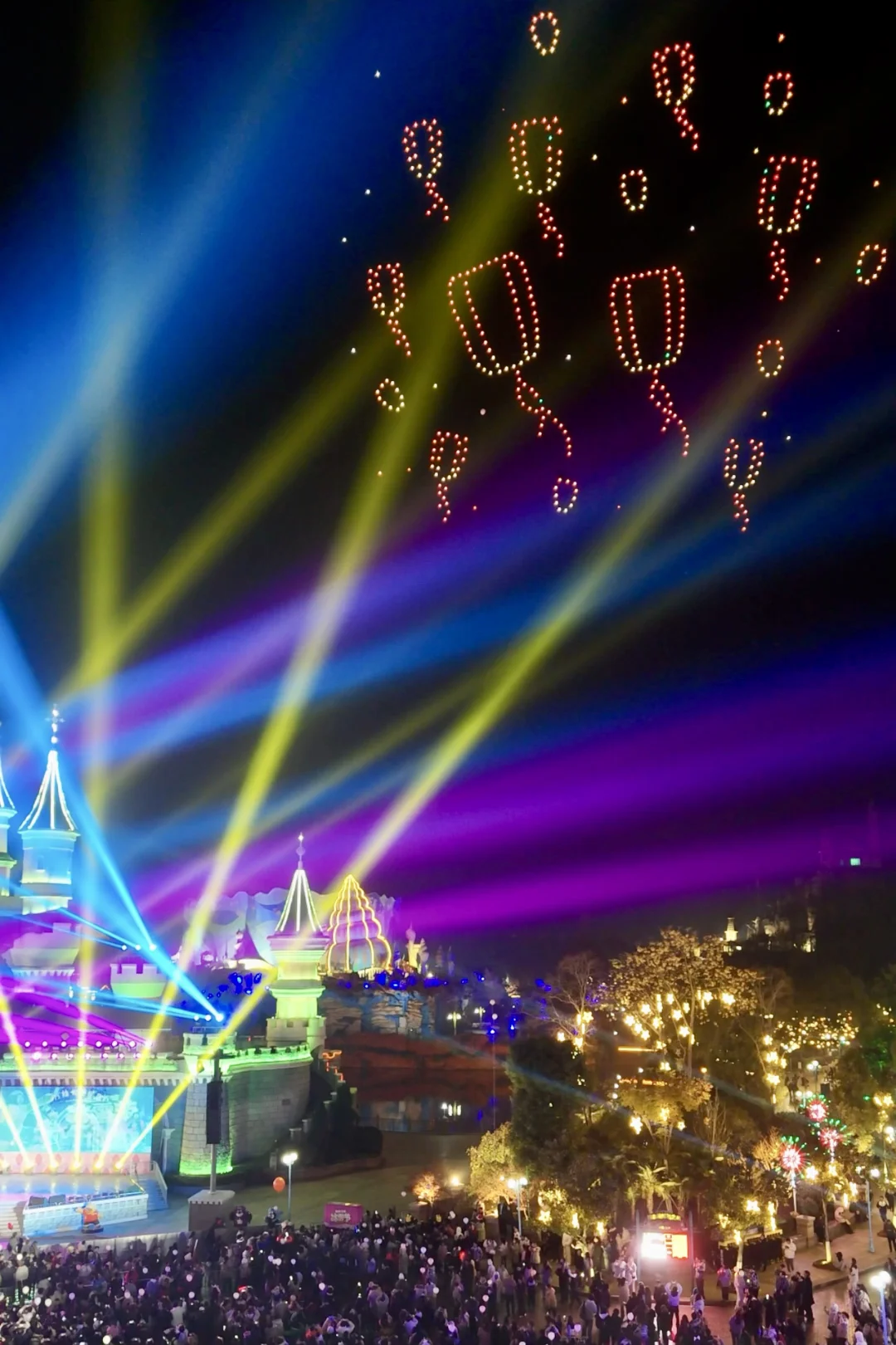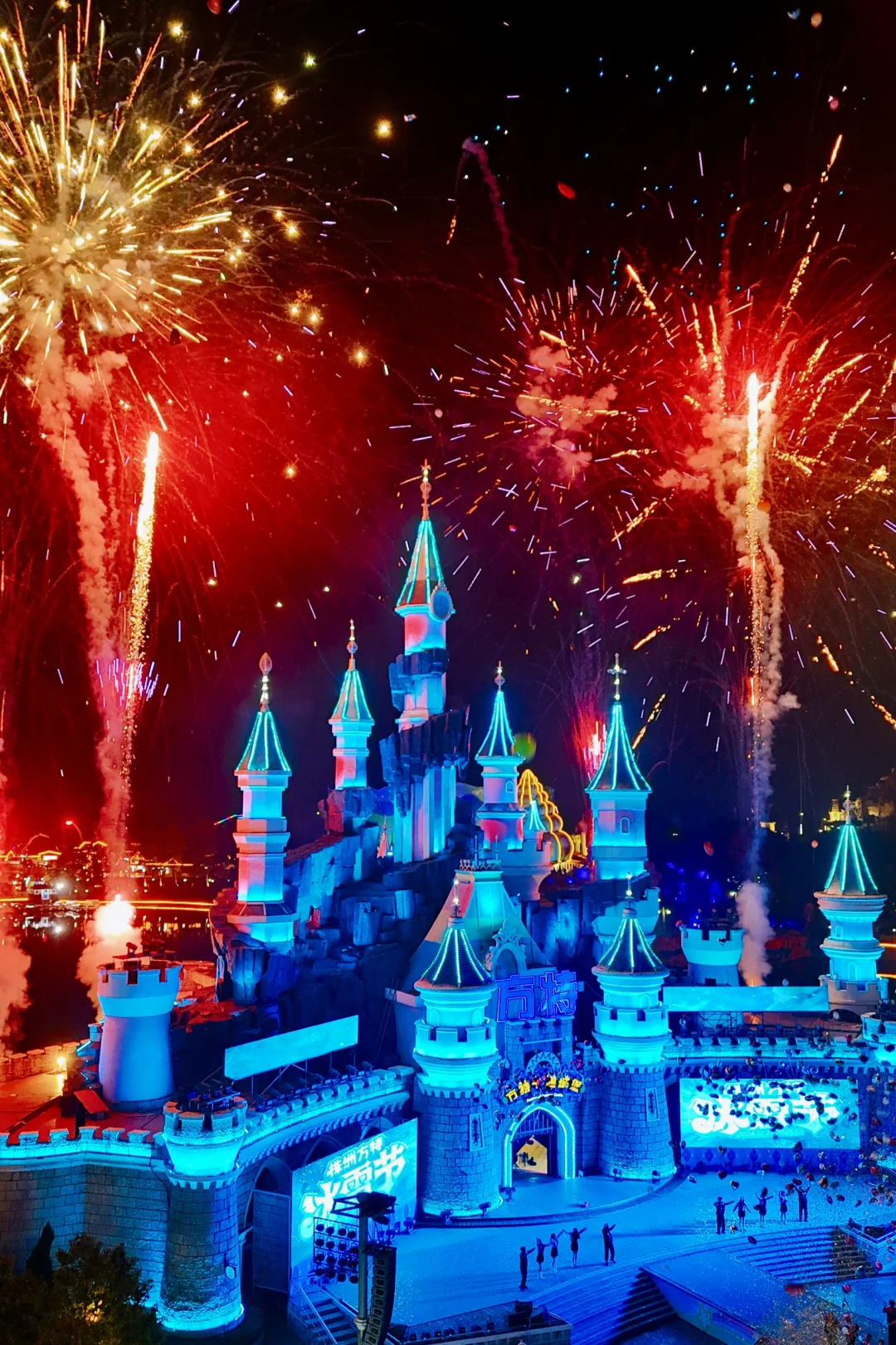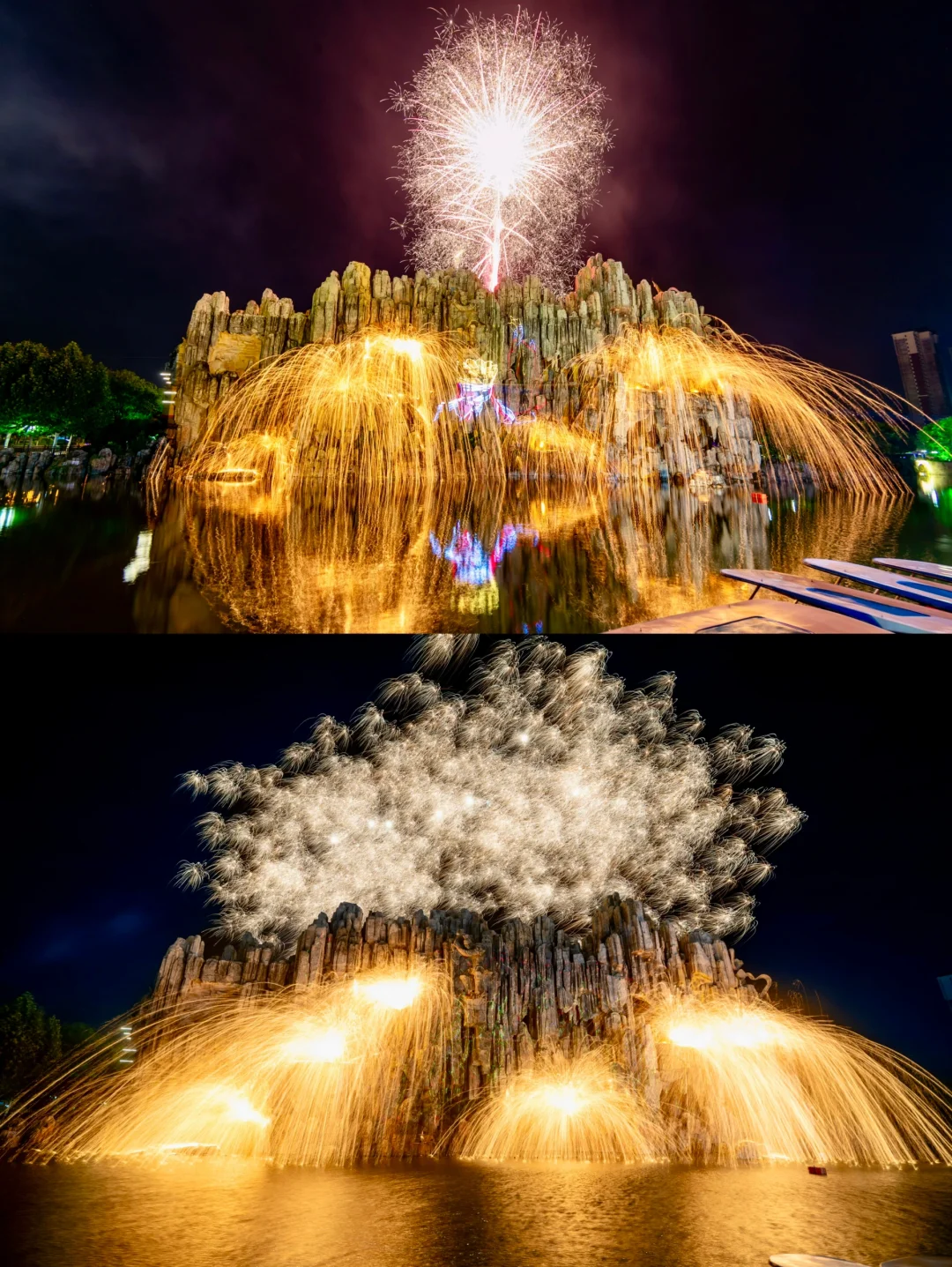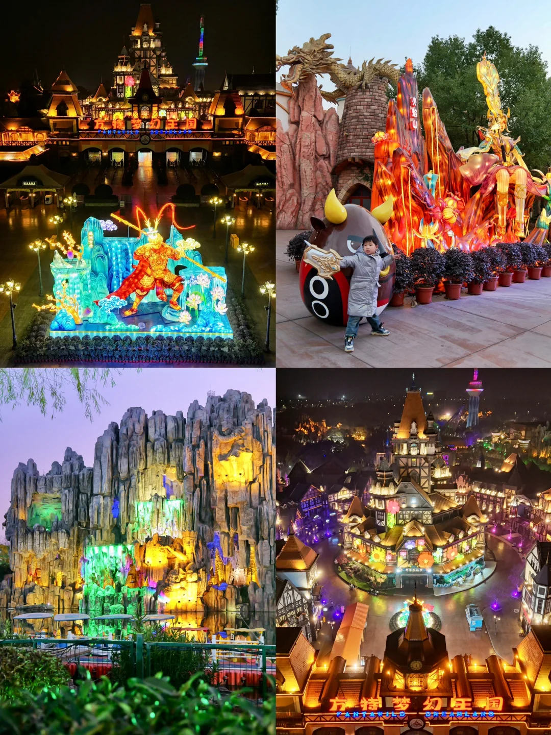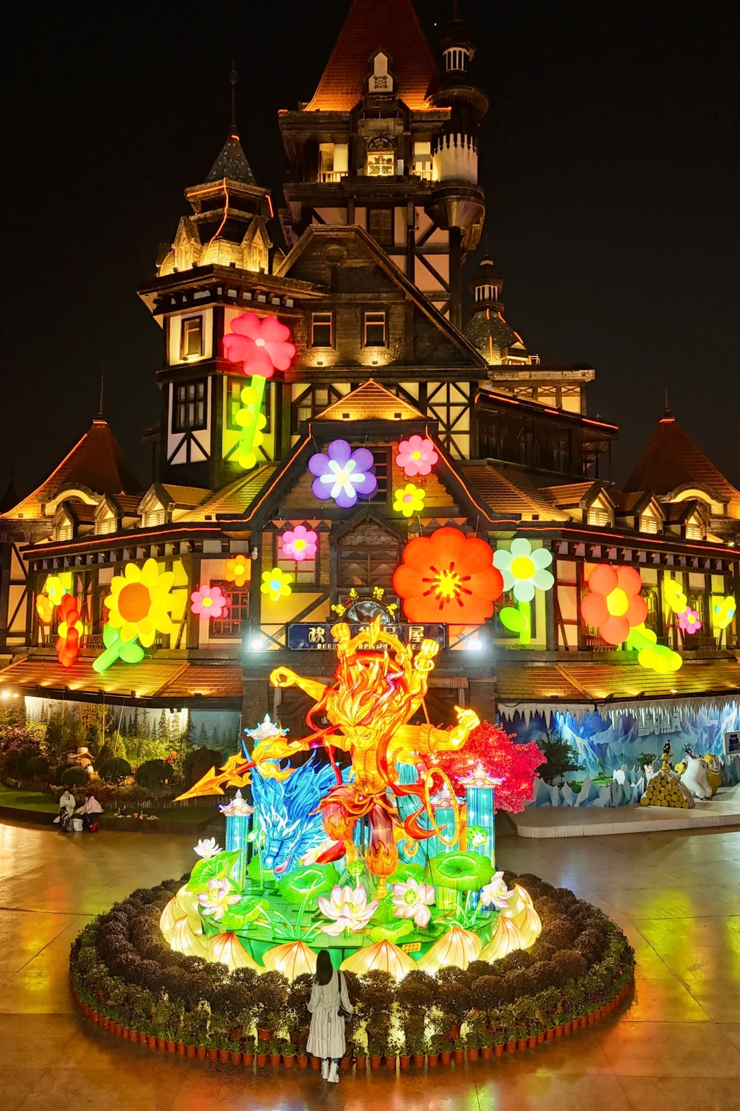 大闹天宫、魔法城堡、缤纷华夏、水漫金山、月光集市……小朋友很喜欢这个园区,到了晚上有七大主题的花灯秀,齐天大圣👉哪吒闹海👉动物世界👉蝴蝶秘境👉深海探秘👉火焰山,花灯搭配音效和环境,花火盛宴的打铁花更加让人惊喜,搭配着梦幻王国的背景,花火倾泻的那一下太壮观了震撼又美丽!栩栩如生!