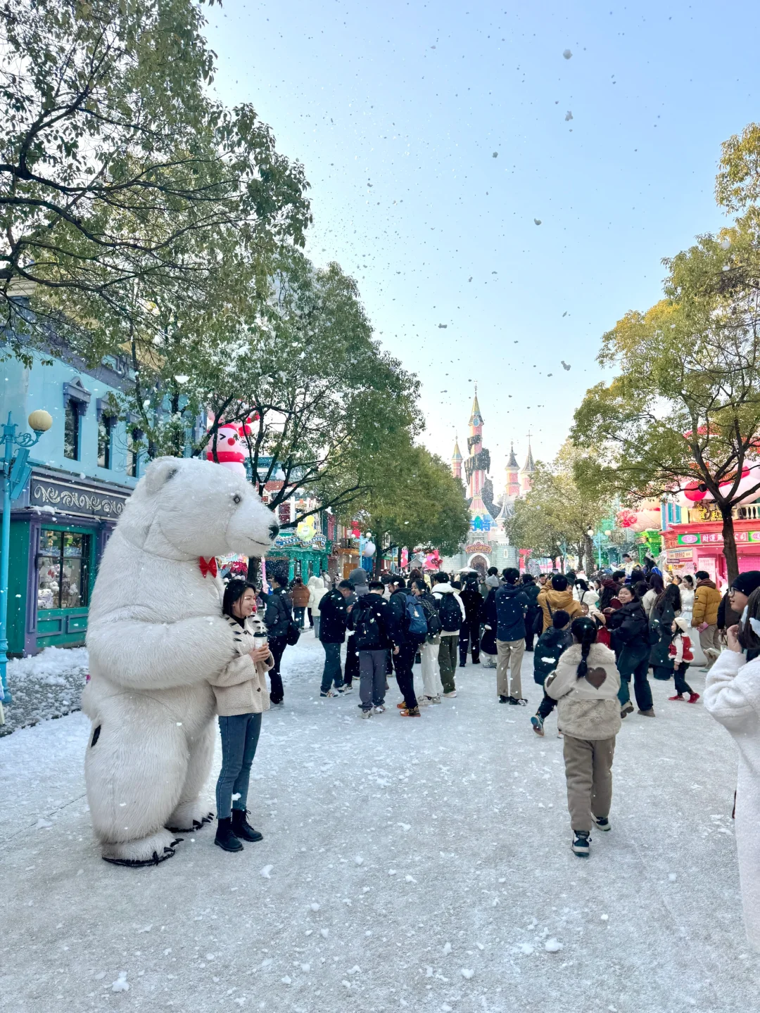 从现在开始到春节,大小活动表演不断,欢乐世界的西部餐厅还增加了2000平的南国雪乡!全是真雪,打雪仗、滑雪、穿上东北大花袄吃冻梨,又梦幻又有趣,孩子玩的贼开心,氛围感拉满!到了春节还会有新春主题夜场和奇遇巡游哦~