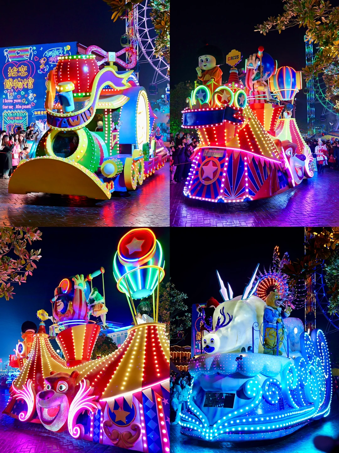 逃出恐龙岛、熊出没剧场、天空之眼、矿山过山车……可上午入园一直玩到下午四点,到大门口的主街和NPC互动,各种春节主题的布置喜庆又漂亮!七点半在城堡处看花车巡游,八点后更有篝火迎新和主题夜场演出的活动,大家一起欢乐迎新年,热热闹闹的氛围,简直太棒了。