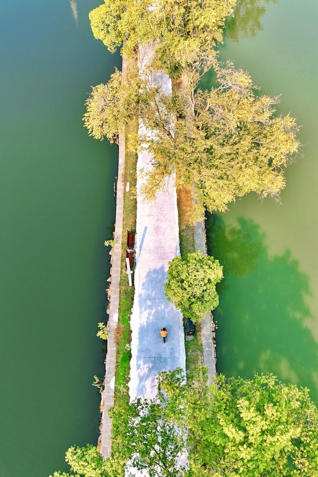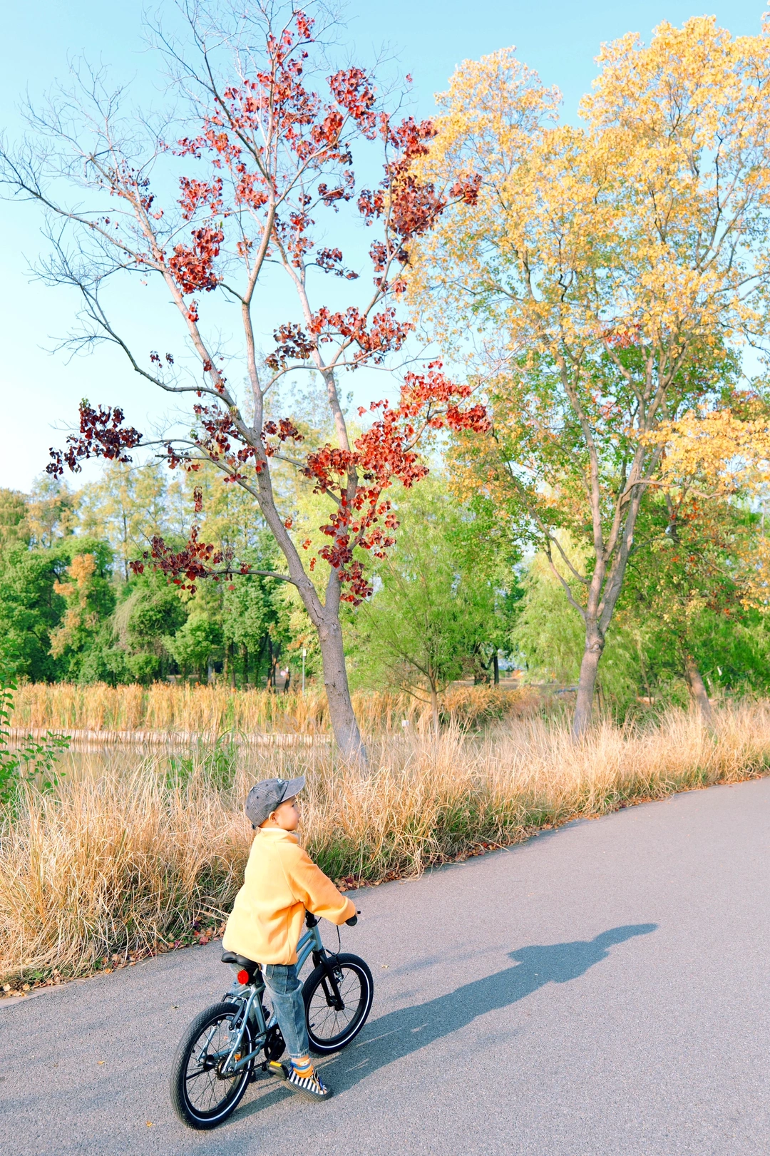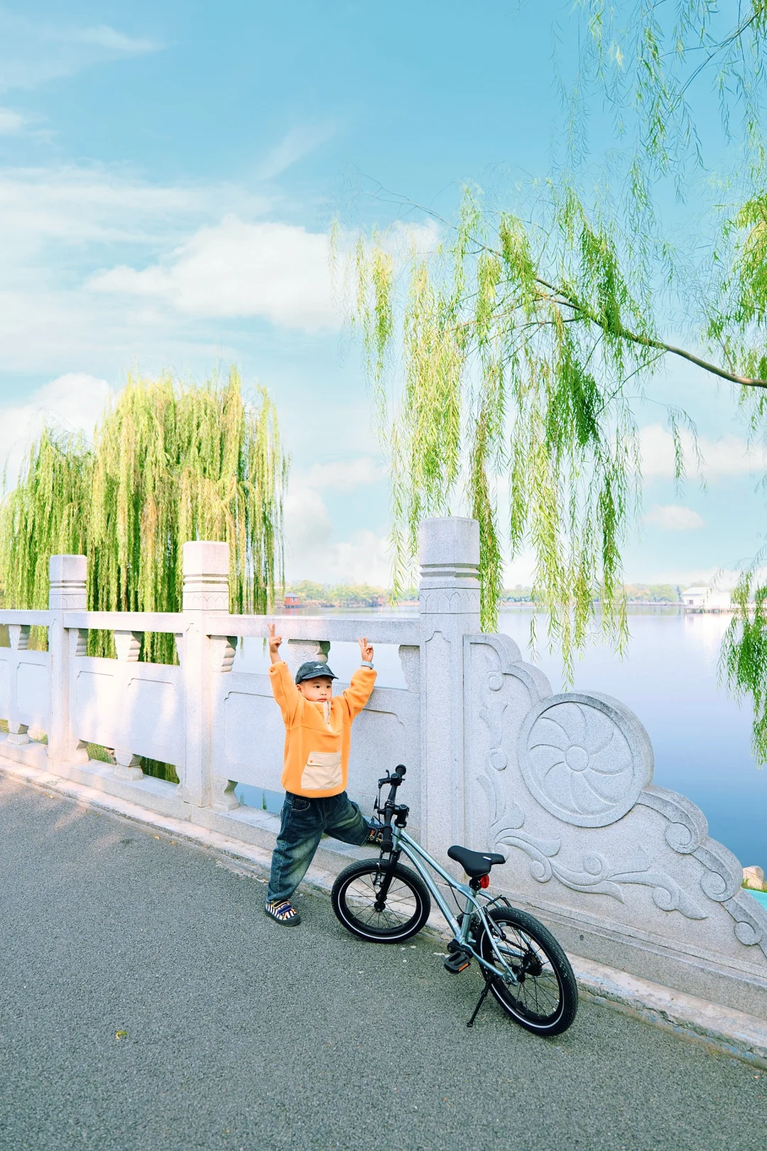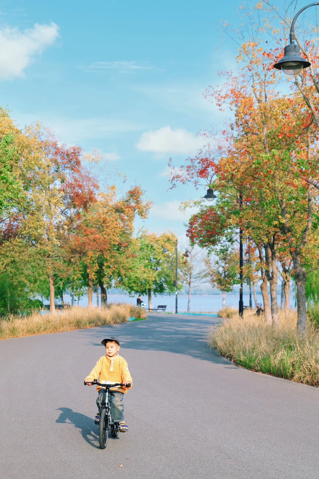 🍂一路上美景令人心旷神怡,黄+红搭配的树叶,秋日氛围感拉满,天气好的时候碧波桥仿佛海上栈道,还有柳条翩翩~