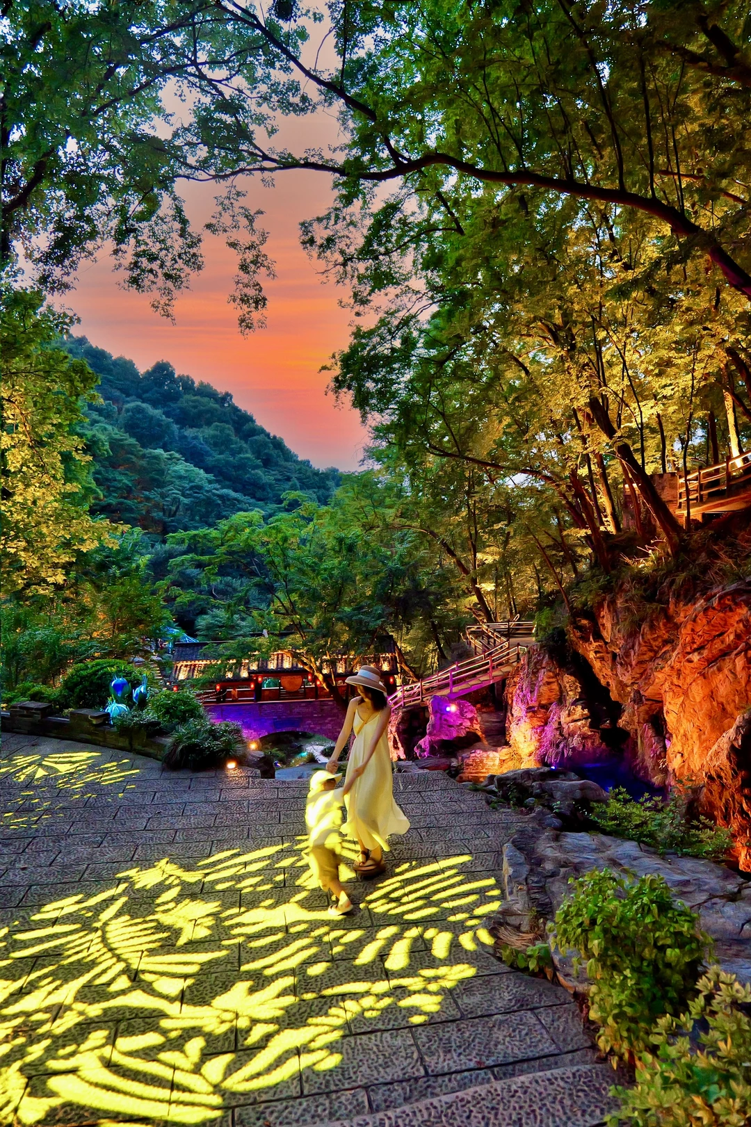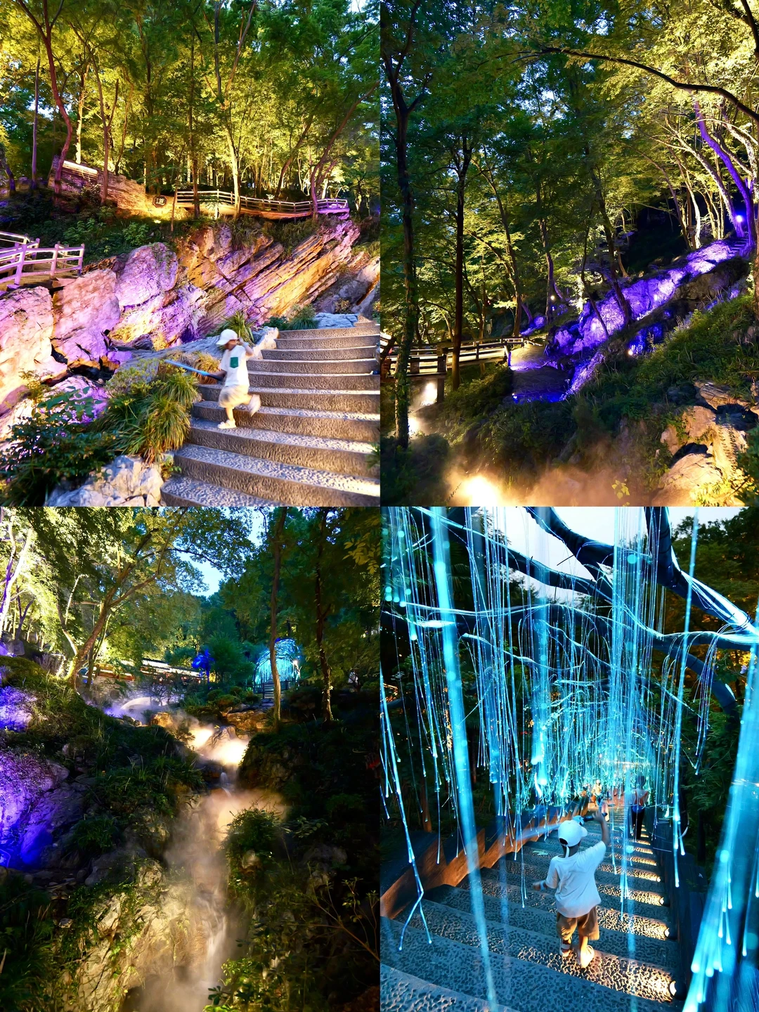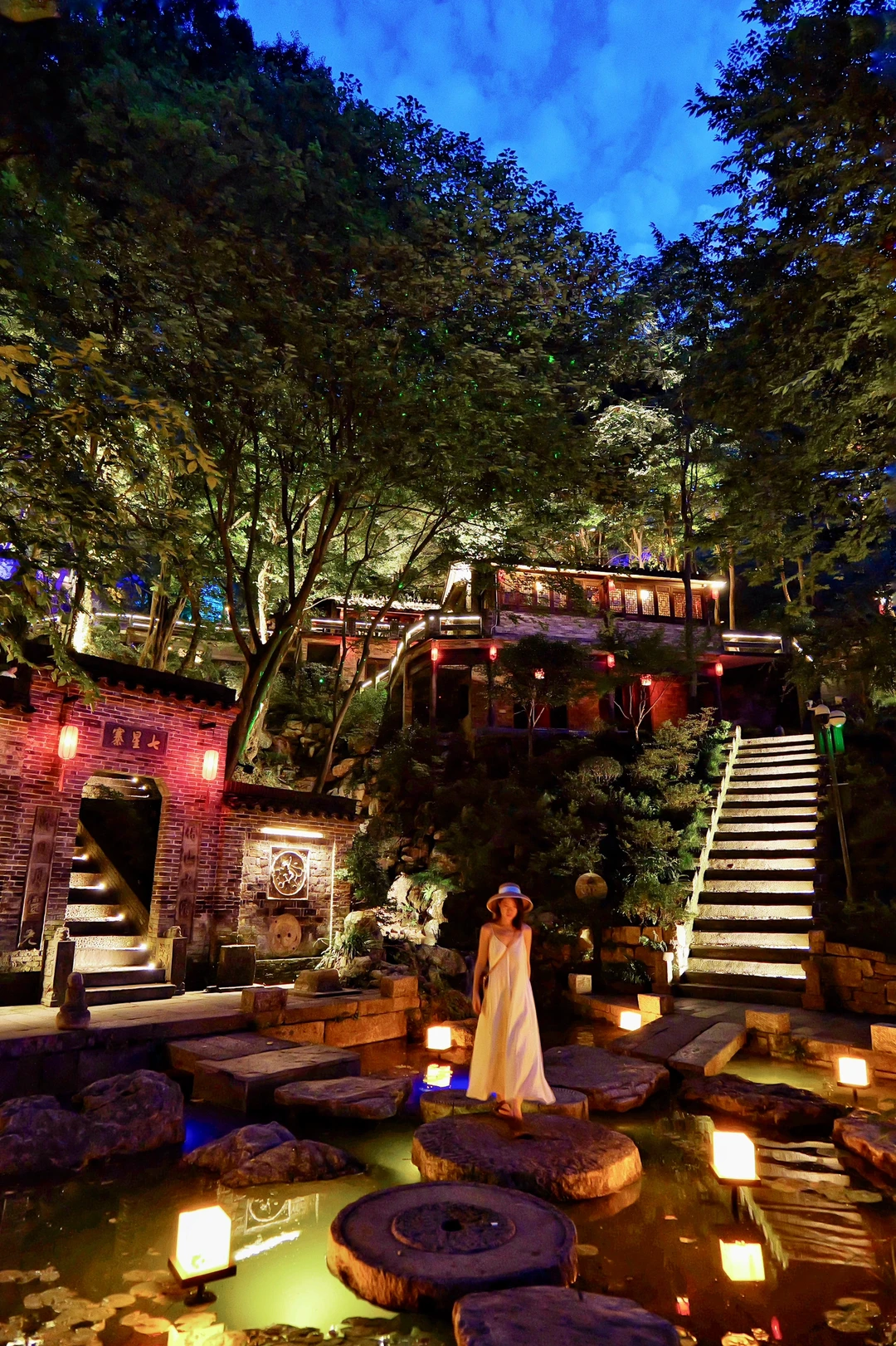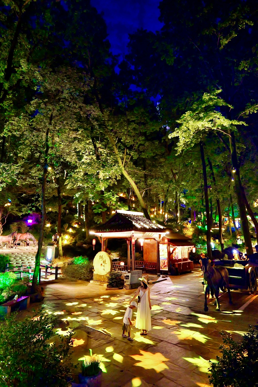 永泉小镇九千多亩,有接驳车穿梭各个景点之间,还有两段云梯直达山顶碉楼欣赏落日夕阳,江南味道古镇、睡莲湖、忆江南12景、九宝温泉……白天古色古香,晚上每一个角落都有丰富的灯光点缀,森林夜景、江南夜游赏灯简直一绝,根本拍不完。
