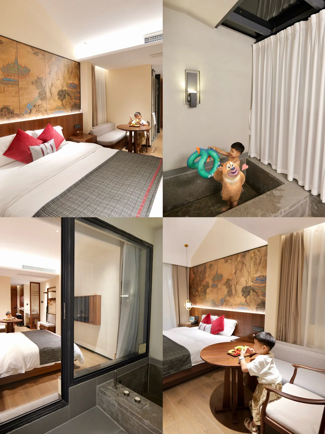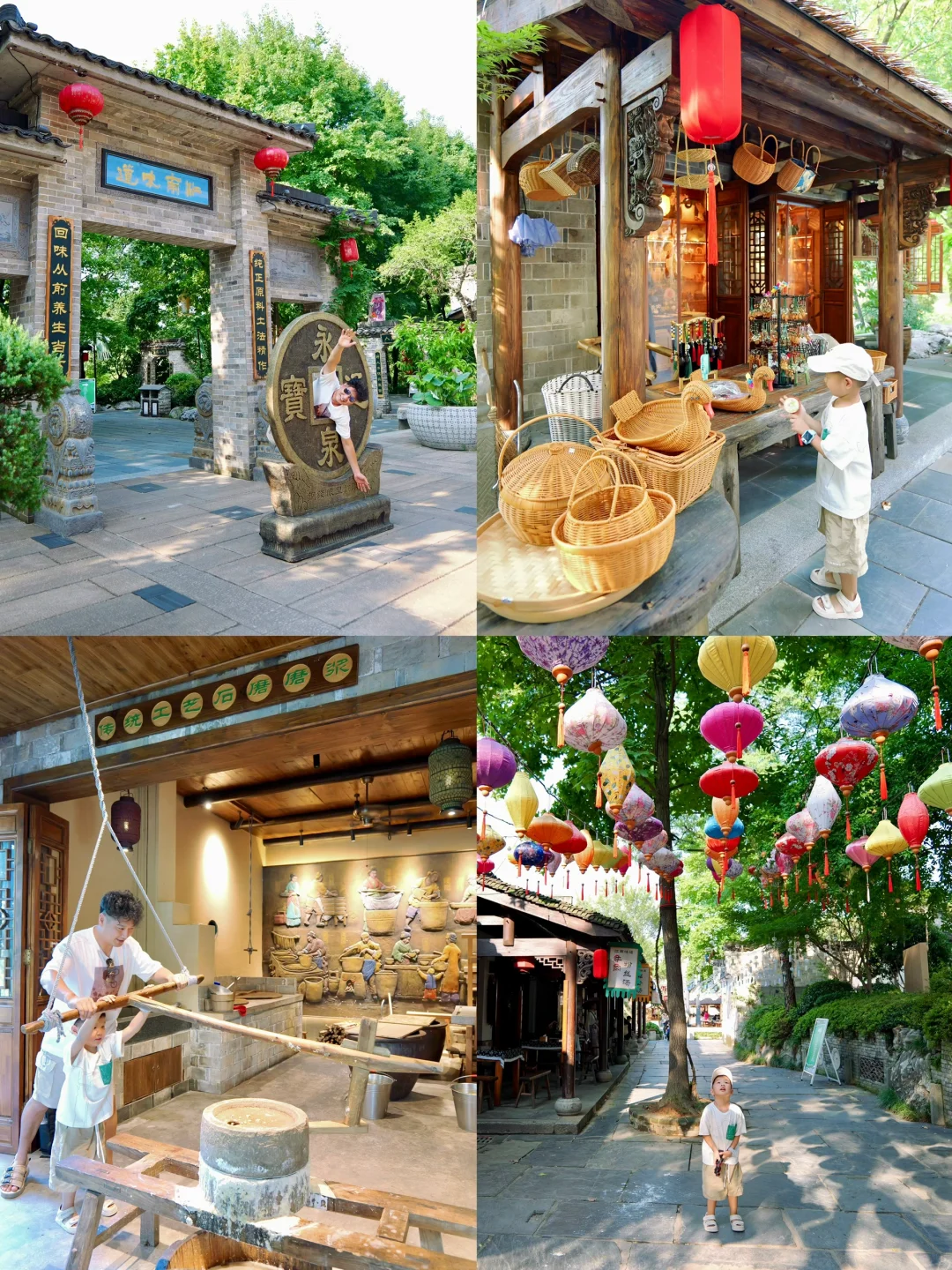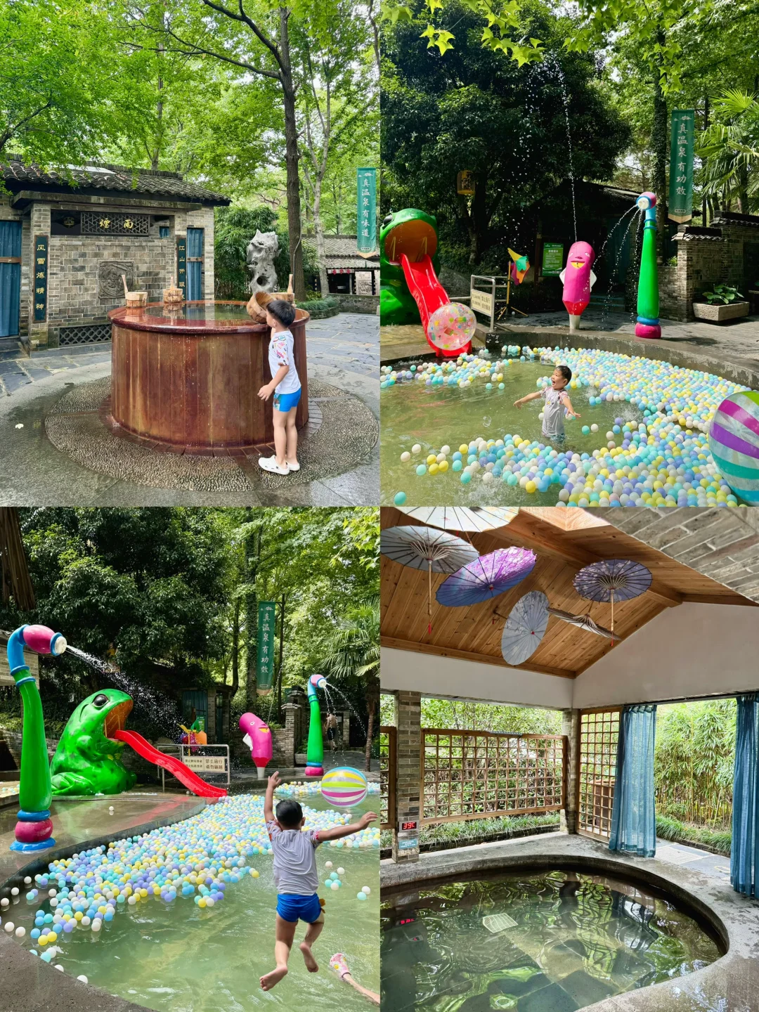 老少皆宜,难怪都是一大家子来度假,这次两天玩不够,没想到一个古风小镇这么适合遛娃,江南童话在西门旁,建在风景里的游乐园,分室内外区域,亲子餐厅、挖沙池、无动力乐园都有;九宝温泉的儿童池放满了海洋球,滑梯和喷水装置娃玩的不亦乐乎。