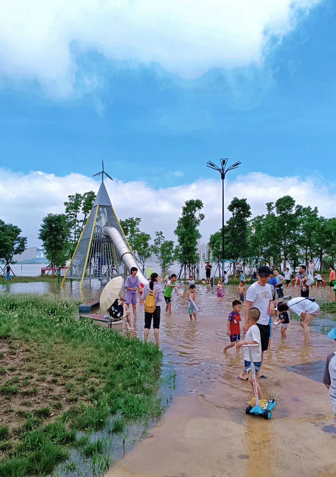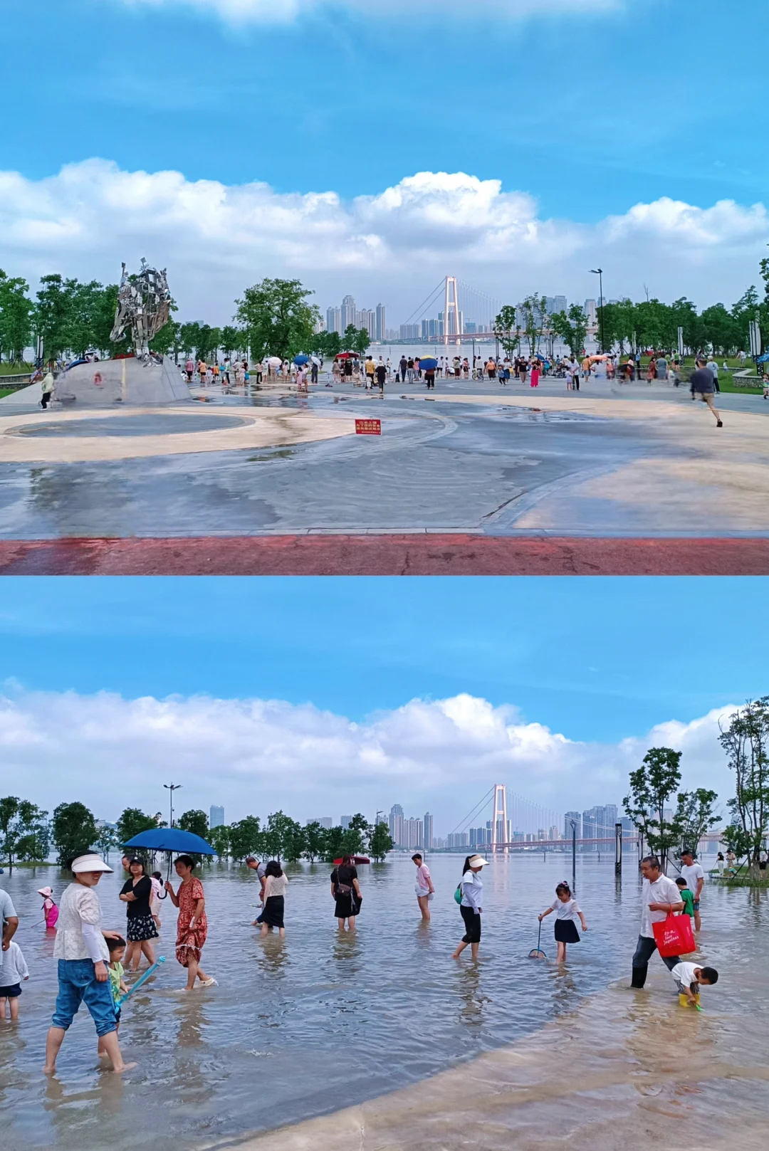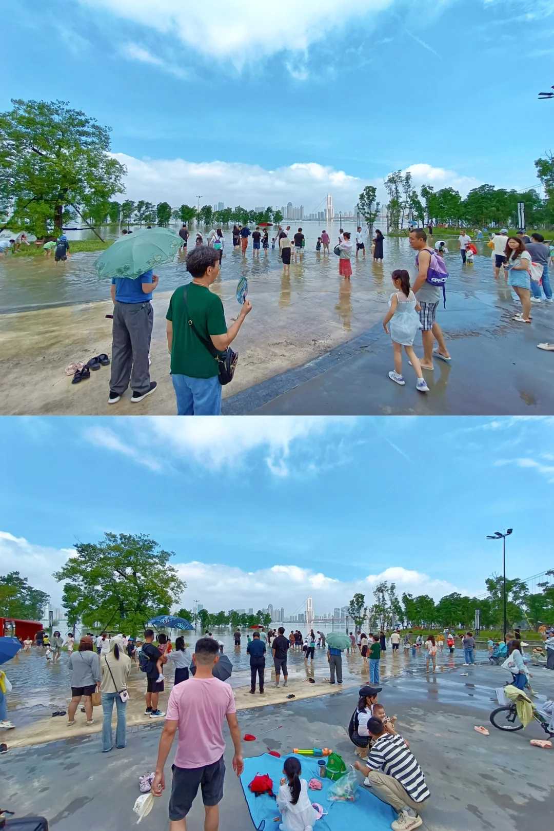 今天天空好美 精神状态也要美 在武汉江滩看海玩水 来自长江边长大的吖刻在基因里的松弛感
