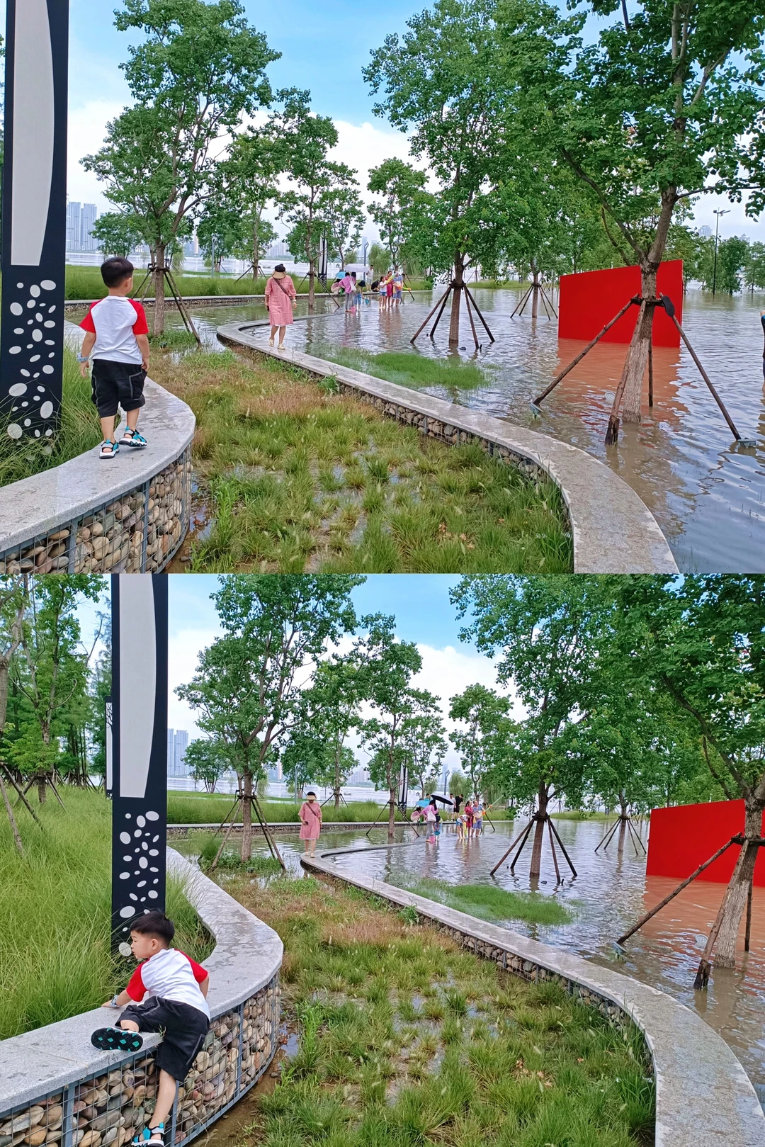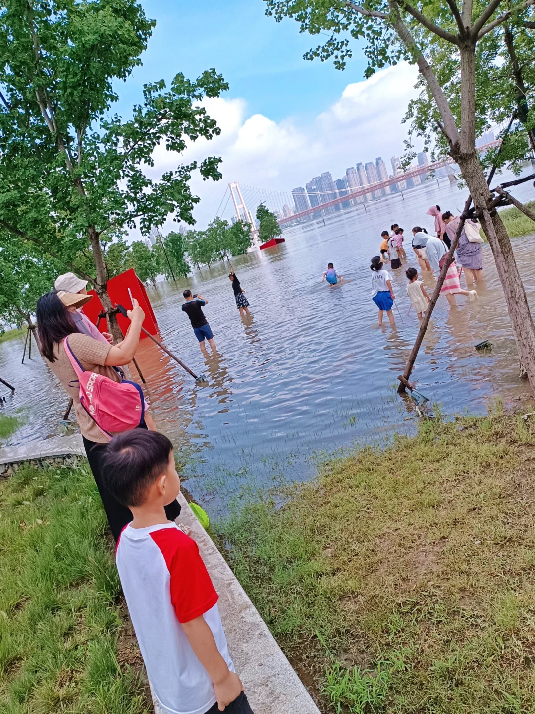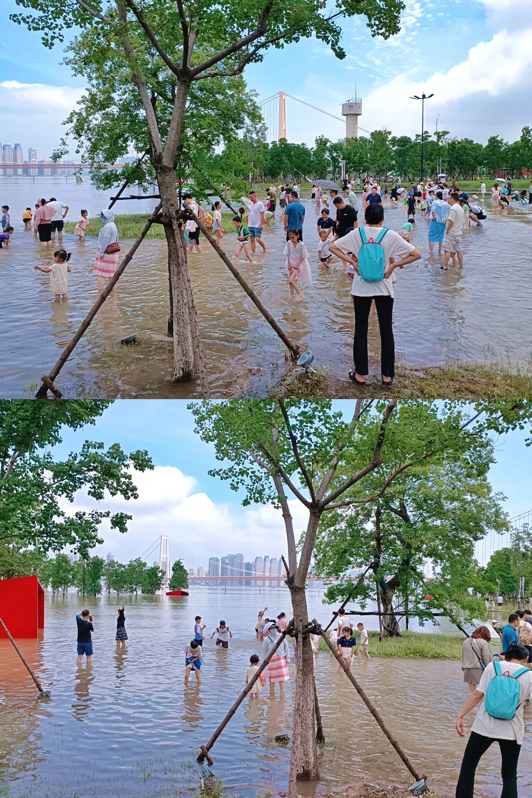今天天空好美 精神状态也要美 在武汉江滩看海玩水 来自长江边长大的吖刻在基因里的松弛感