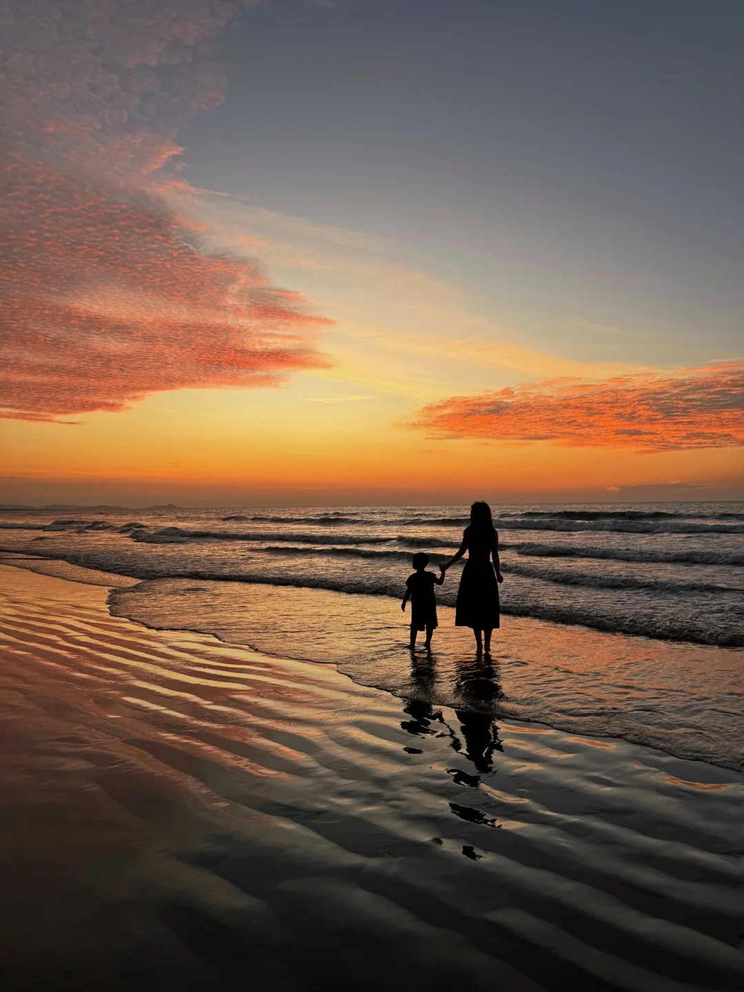 妈妈们荡着秋千拍着照 超美日落从头看到尾