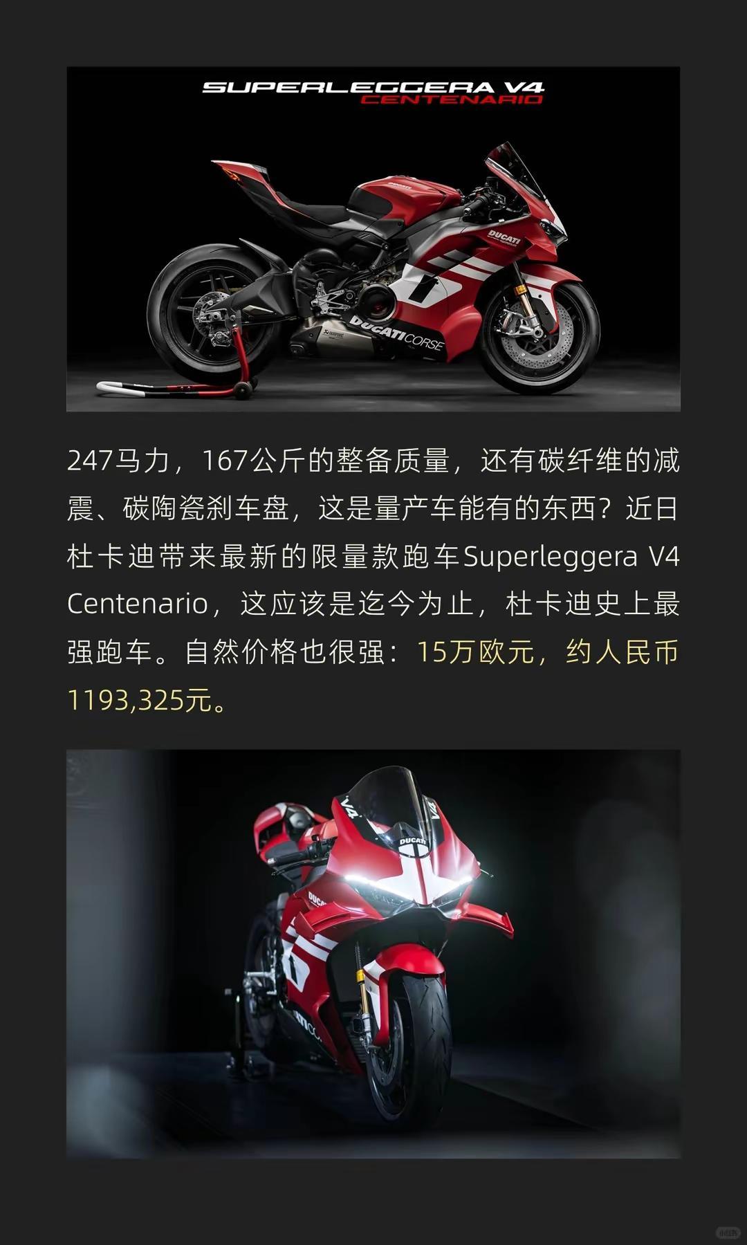杜卡迪新款量产车太疯狂!119.3万起。杜卡迪新款量产车太疯狂!247匹+碳纤维减震+碳陶刹车盘!119.3万起