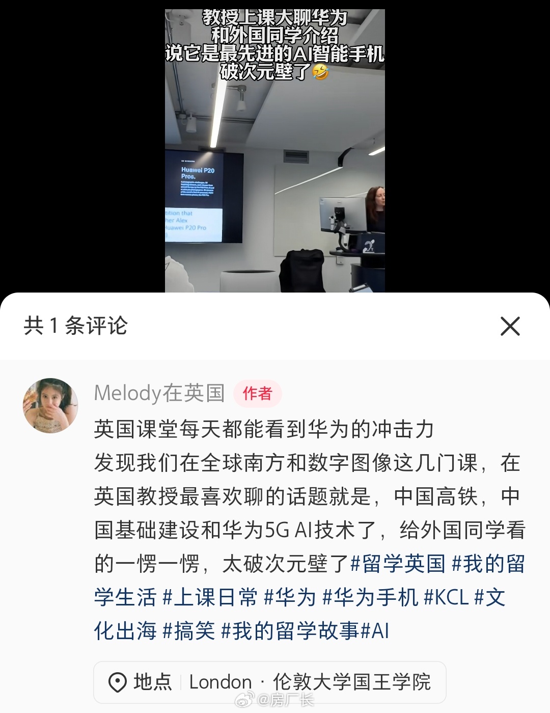 留学生分享华为在海外的影响力,英国教授最喜欢聊的话题就是中国基建和华为5G AI技术