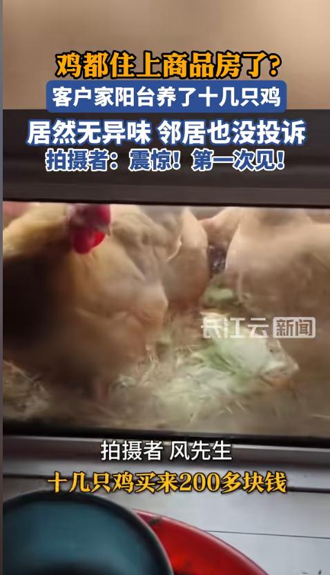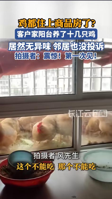 “开眼了!”近日,浙江嘉兴,一男子上门给客户贴墙布时,发现客户竟然把阳台打通了,而且还改造成了一个养鸡场。阳台上做了防漏处理,通风后也没有什么异味,客户养了十好几只鸡,窗台上摆了不少饲料。网友:自己养的吃着安全! 每年315过后,不少人谈“吃”色变,一想到外面的食品都是科技与狠活,自己心里就开始发怵,想尽各种办法,自己给自己弄点绿色健康的食品。 据媒体3月28日报道,风先生的日工作就是给人贴墙布,这一天,有个客户下了单,他上门一看,被阳台上的景象给震惊到了。客户把两套商品房阳台给打通了,改成了一个养鸡场。 养鸡的阳台都是经过改造的,全部都进行了防漏处理,不用担心鸡飞出去,也不用担心粪便渗透。平时饲料就放在里面的窗户台上,喂鸡也方便。而且,开窗通风之后,并没有什么异味。周围邻居也没有投诉的。 户主说,他就是看了315之后,觉得外面买的这些不安全,就动了自己养鸡的心思。他现在一共养了十几只鸡,买鸡苗的时候花了200多块钱。这些鸡,养上三四个月就能吃了。不说味道怎么样吧,最起码自己能吃的安心。 网友看后表示,商品房养鸡,也是活久见了。虽然看起来很好,但还是不推荐。窗台毕竟空间太小,养十几只鸡有些太挤了,而且又是喂饲料,和外面买的肉食鸡区别不是很大。 更重要的是,养鸡还得做好防疫,像什么鸡瘟啊,禽流感啊,都很危险。冒这么大的风险,就为了养这几只鸡,感觉并不值当。 信息来源:《鸡都住上商品房了?客户家阳台养了十几只鸡》长江云新闻