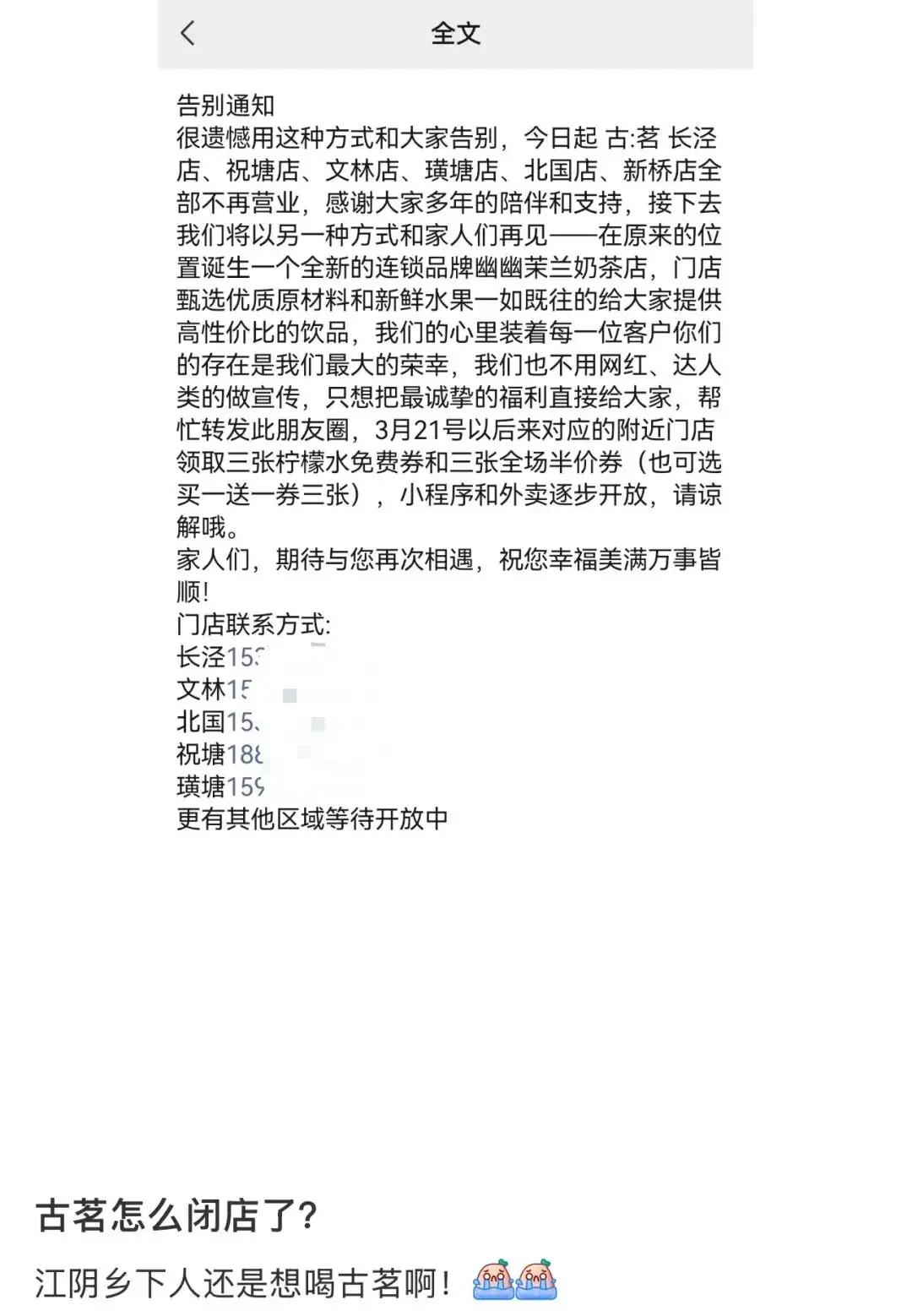 近期在江苏苏州这边,古茗多家奶茶店铺在一夜之间更换成名为幽幽茉兰的事件引起了当地