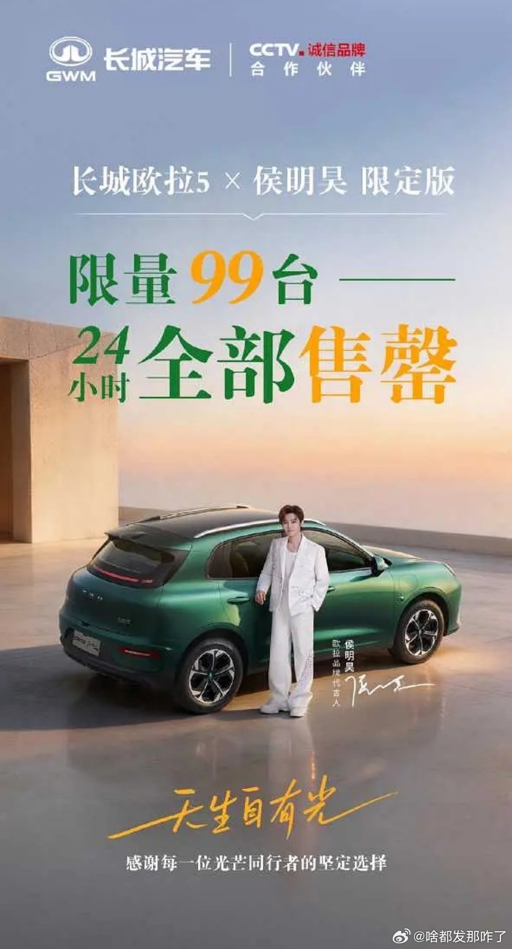 侯明昊粉丝的购买力如何?限量99台车,24小时售罄,预计成交销售额千万起步~