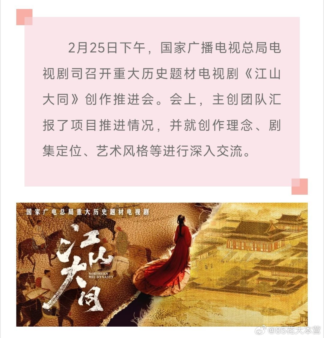 广电总局电视剧司召开《江山大同》创作推进会!