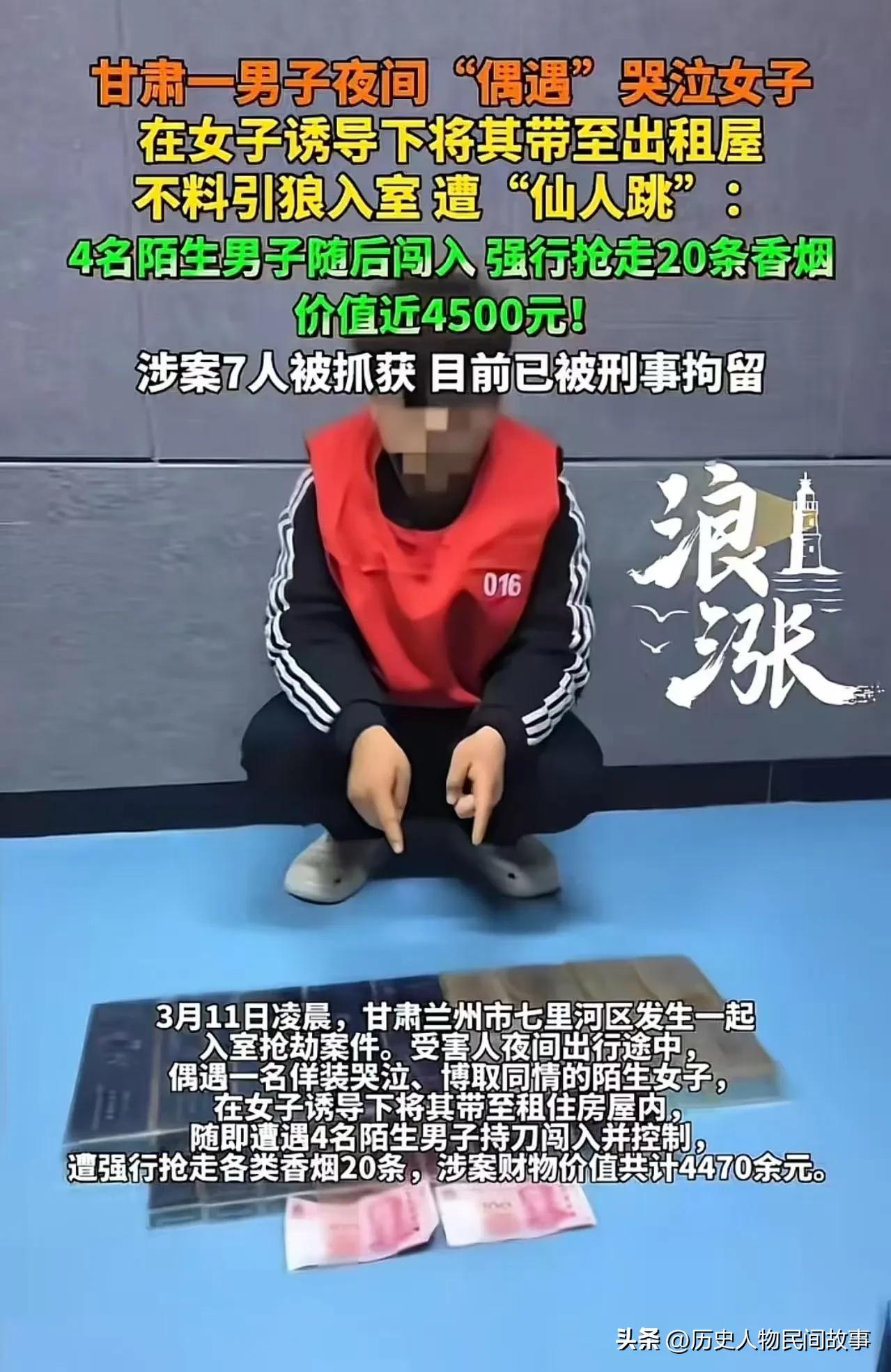 案件速览(兰州七里河·3·11仙人跳抢劫案) - 案发时间:2026年3月11日凌晨 - 案发地点:兰州七里河区,男子出租屋 - 作案手法: 1. 女子佯装路边哭泣博取同情,诱导男子带其回出租屋 2. 刚进门,4名男子持刀闯入控制受害人 3. 暴力抢走20条香烟,价值4470元(近4500元) - 案件进展: - 警方锁定7人团伙作案,分两路抓捕(兰州+酒泉) - 7人全部抓获,已刑拘,赃物全额追回返还受害人 - 案件正在进一步侦办中 安全提醒⚠️ 夜间遇陌生女子求助/诱导回家,务必保持警惕,优先选择报警或送派出所,切勿轻易带回住处,避免落入“仙人跳”陷阱。 需要我帮你整理一份夜间出行防仙人跳/抢劫的实用安全清单吗?仙人跳强奸 白银连环奸杀案