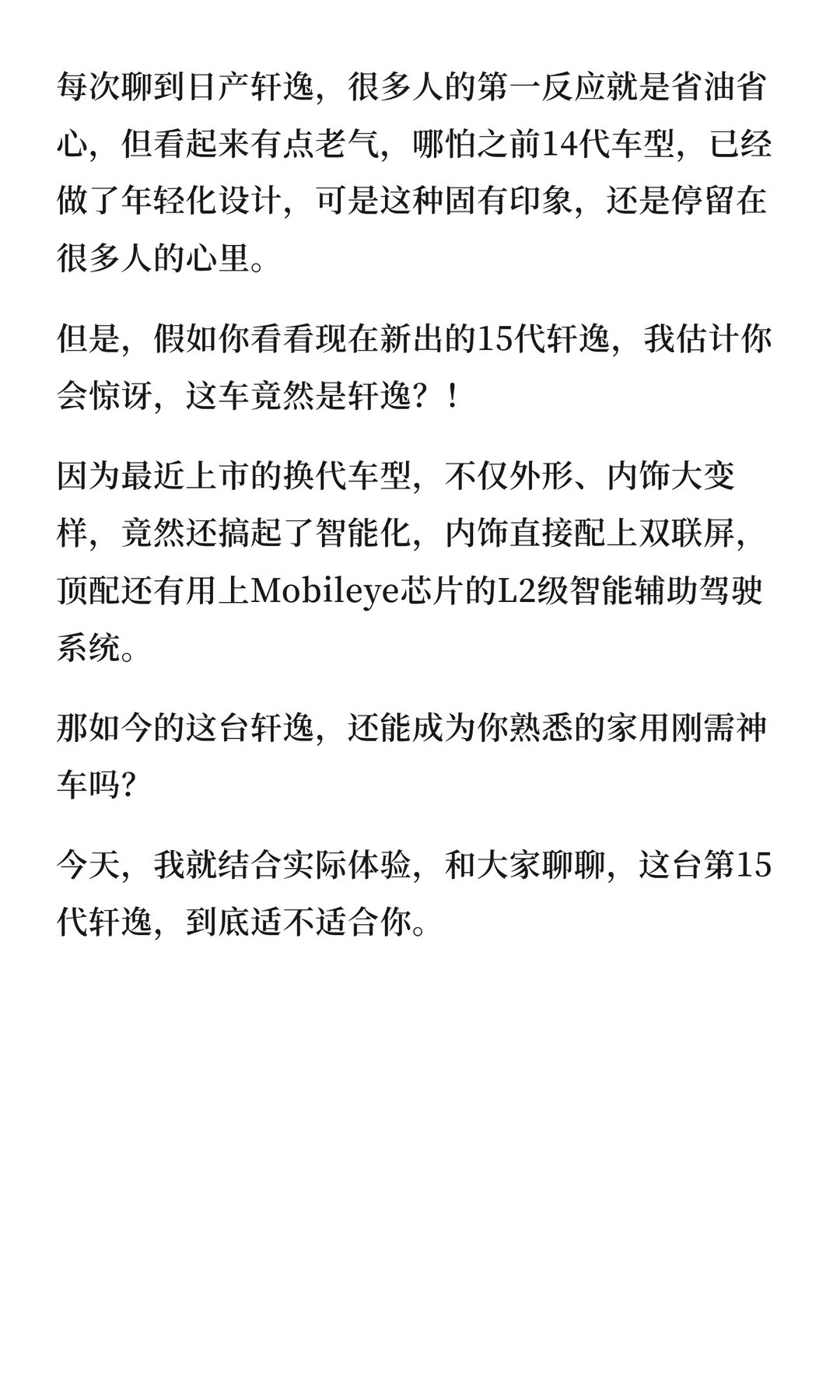 在网上,你问10万预算该买什么车,人人都推荐新能源,可现实中,真到掏钱那一刻,很多人又默默转回了燃油车。为什么?因为大多数家庭买车,图的不是新鲜感,图的是确定性。15代轩逸这车有点意思,它不是靠堆参数吓你,而是想把燃油车的稳定和新能源车的那点新鲜感,揉到一台家轿里。 日产轩逸 三刀侃车