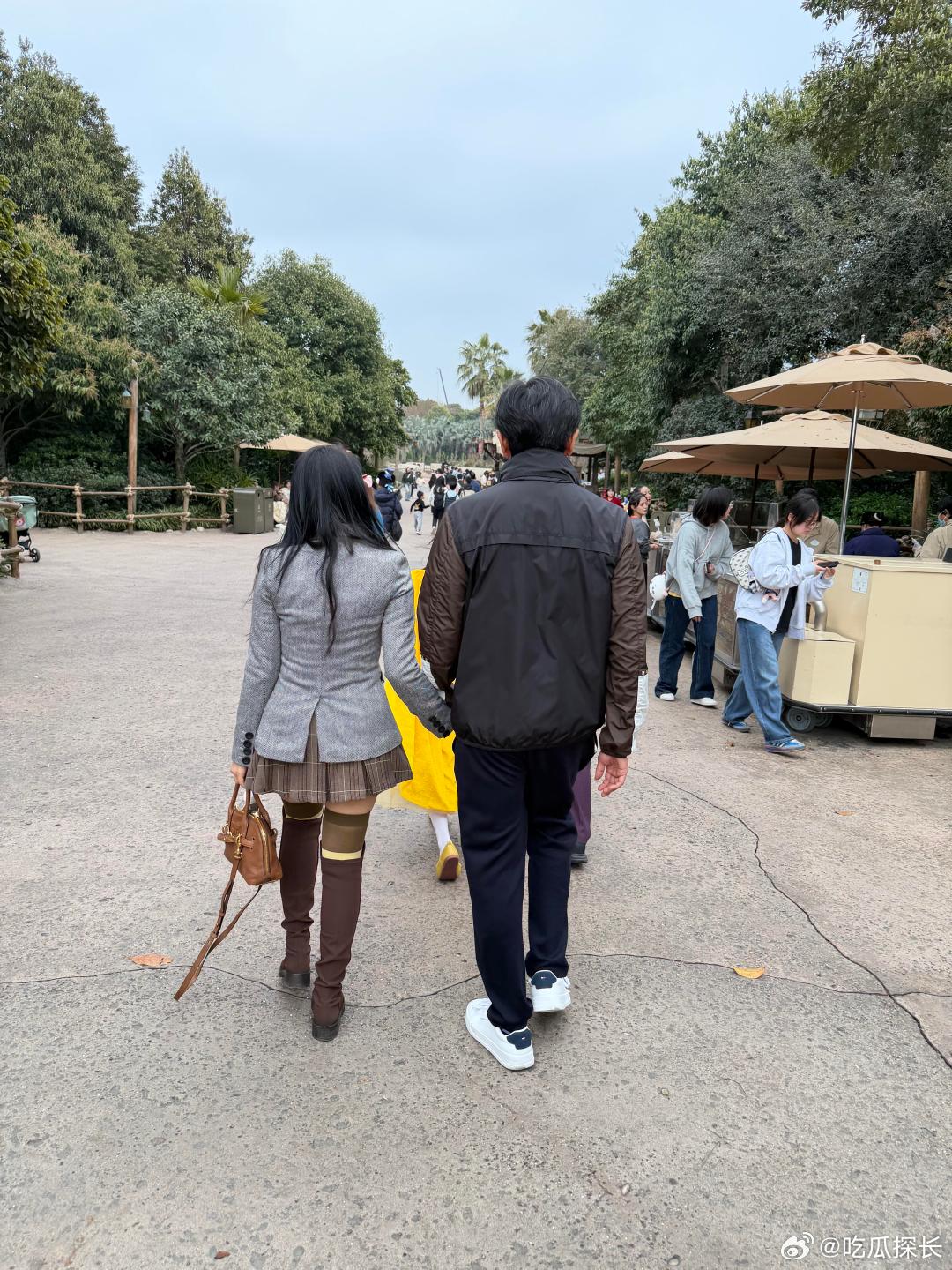 3月29日,伊能静与秦昊牵手逛上海迪士尼,伊能静衣服小了,秦昊白头发好多,伊能静
