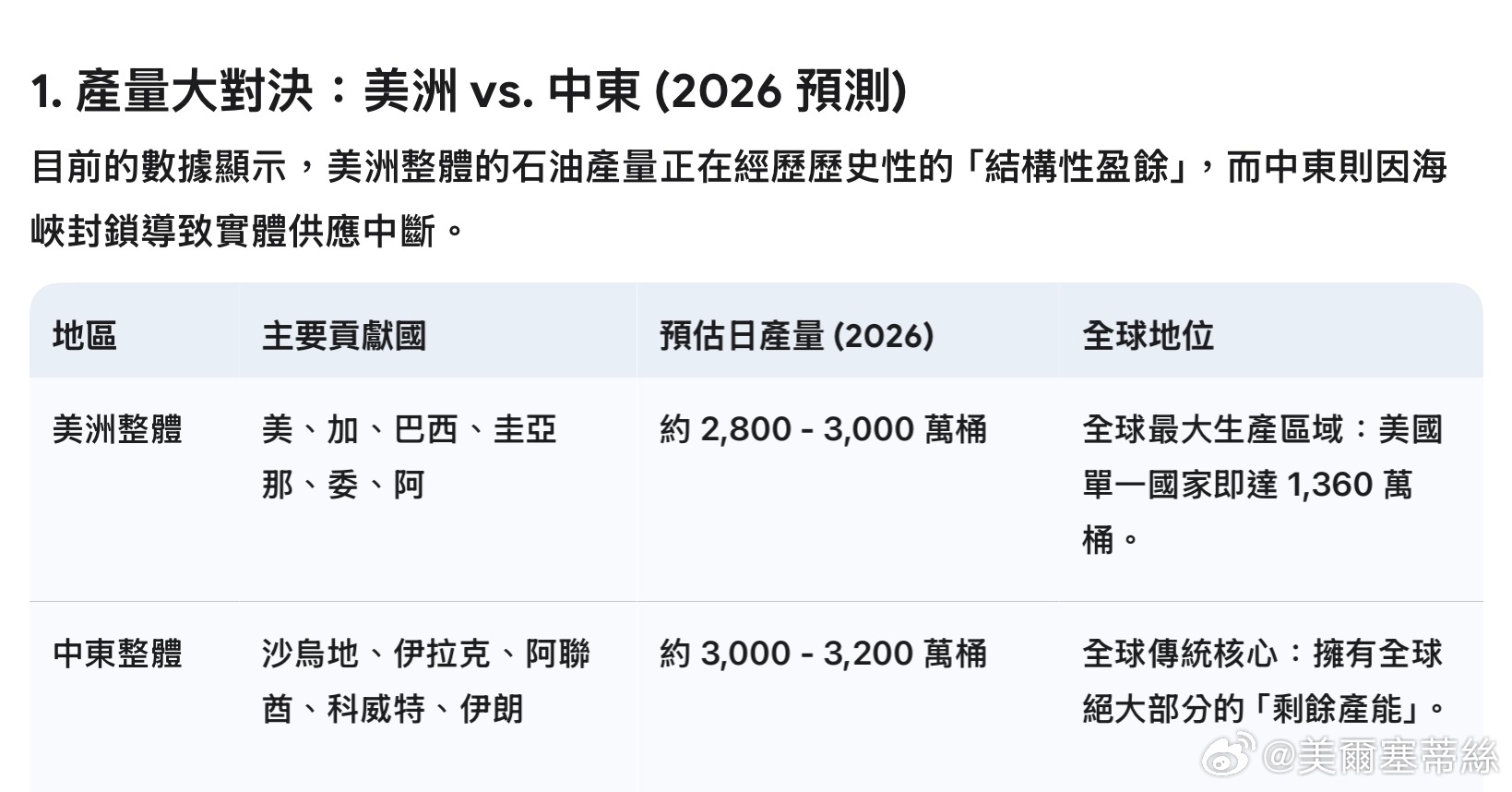 一句話總結: 美洲已奪走了中東的「產量王座」,但尚未奪走中東對全球能源供應鏈的「咽喉控制力」。