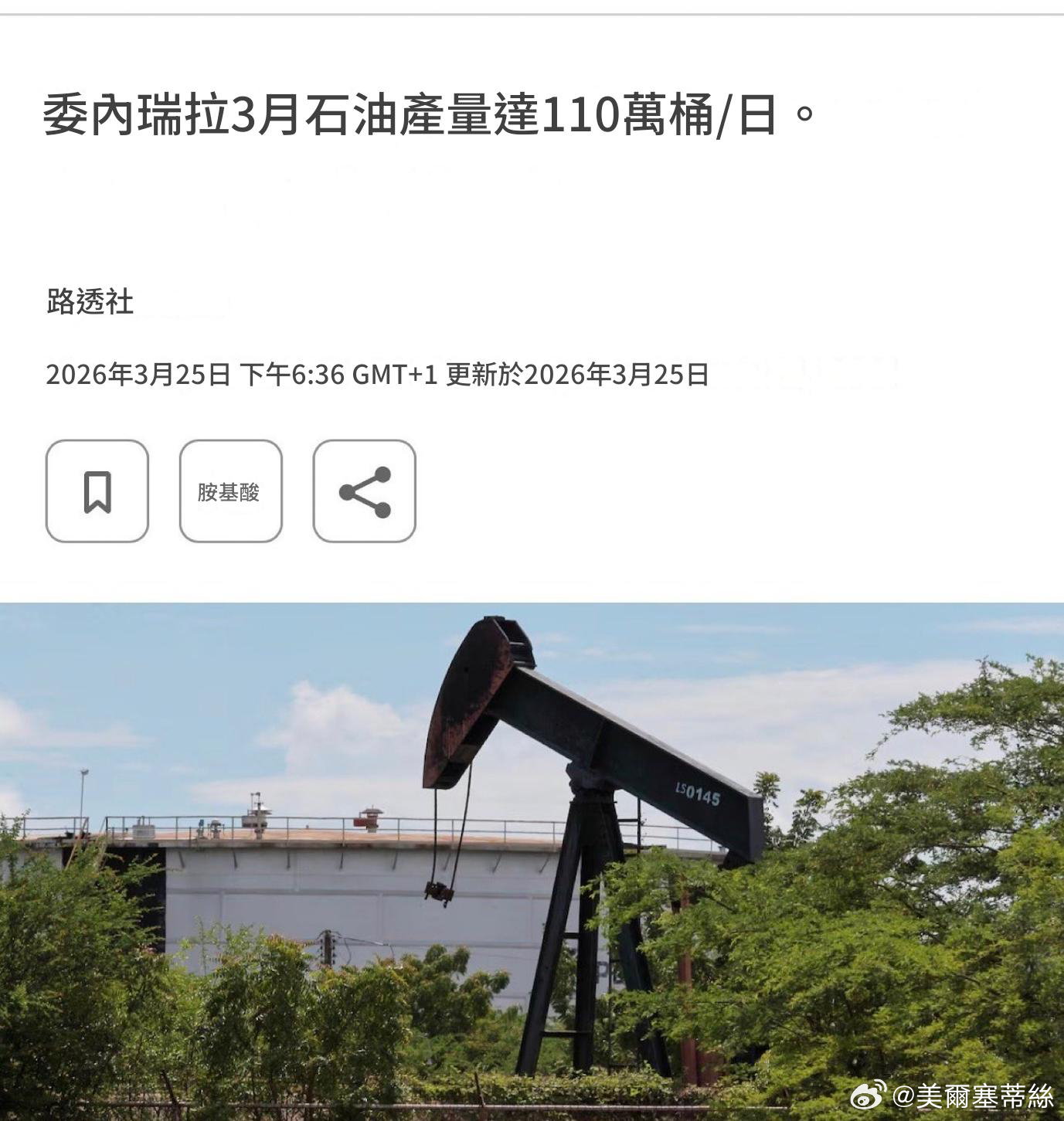 委內瑞拉擁有全球最大的已探明石油儲量(約 3000 億桶)。隨著 2026 年初實施的法律改革,該國石油產業對私人投資全面開放:2026 年 3 月,原油產量已攀升至 110 萬桶/日,相較於 2020 年的低谷(35 萬桶)有顯著進步。委內瑞拉政府計劃在 2026 年內將產量再提高 18%,長期目標是恢復到 2000 年代初期每日 300 萬桶的水平。