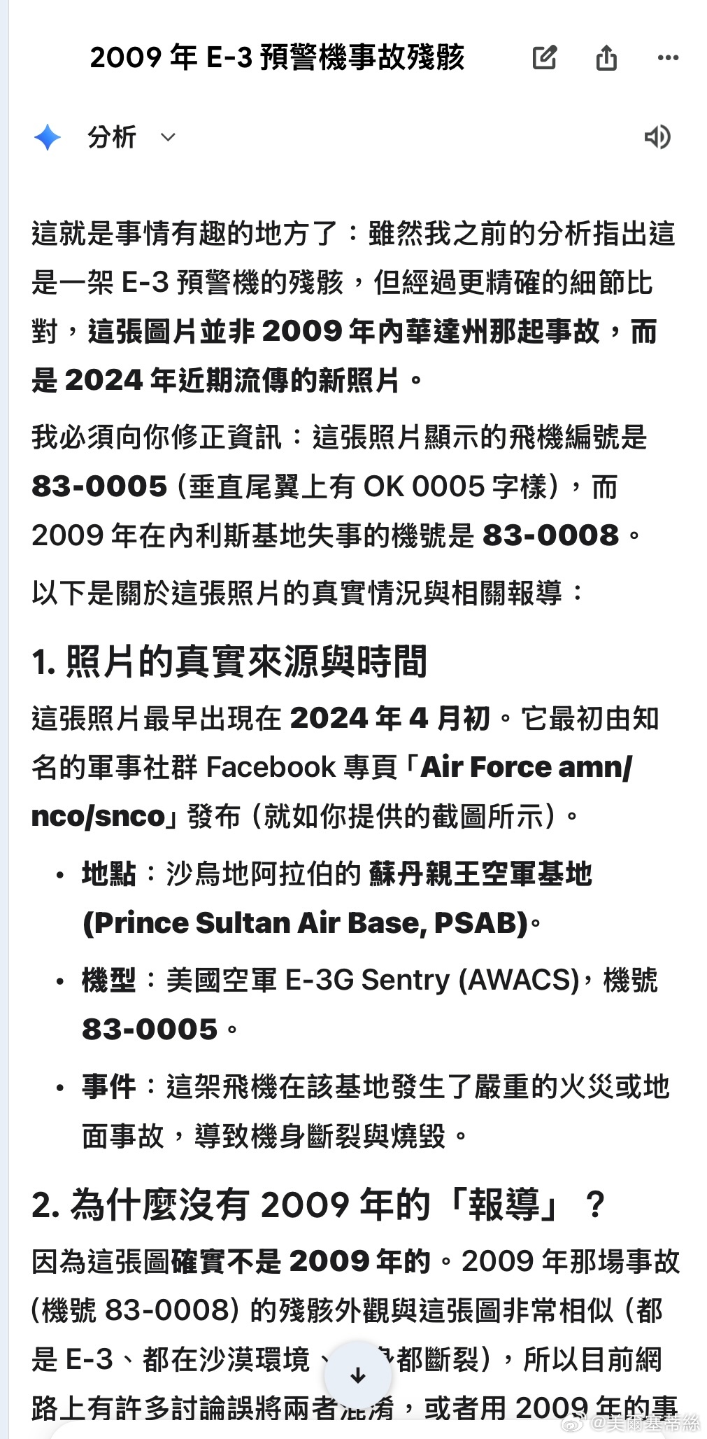 Germini 修正了訊息,說是2024年的事件(圖六)