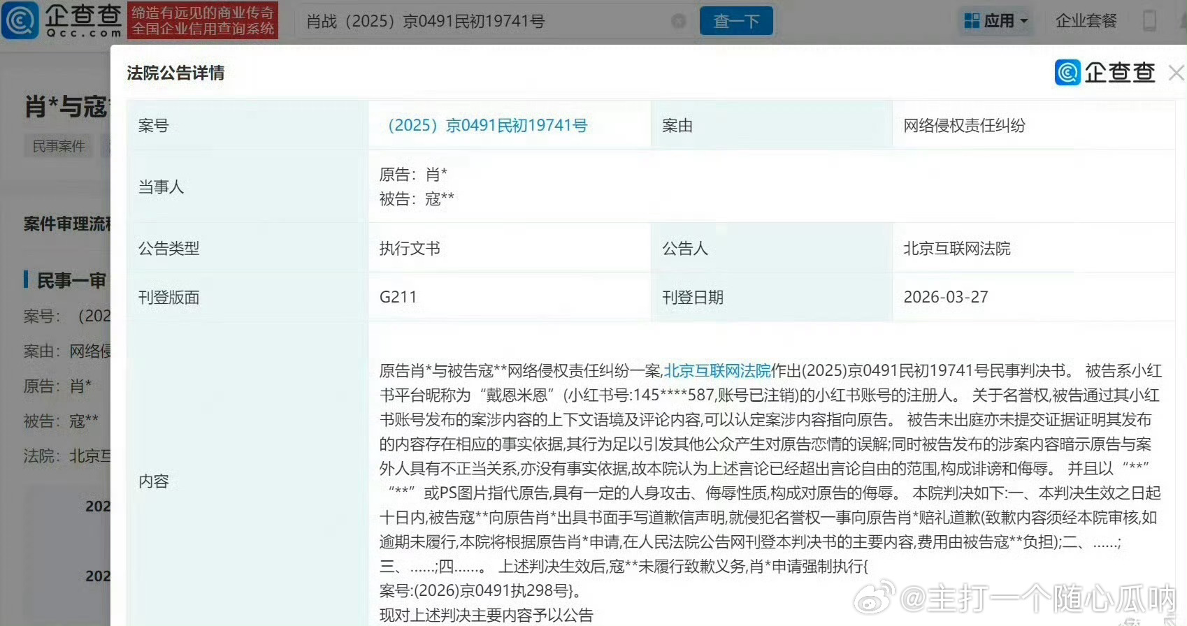 诽谤肖战黑粉未道歉被强执确实是一个嘴硬的网暴犯,这会儿被强制执行了,没胆没种!