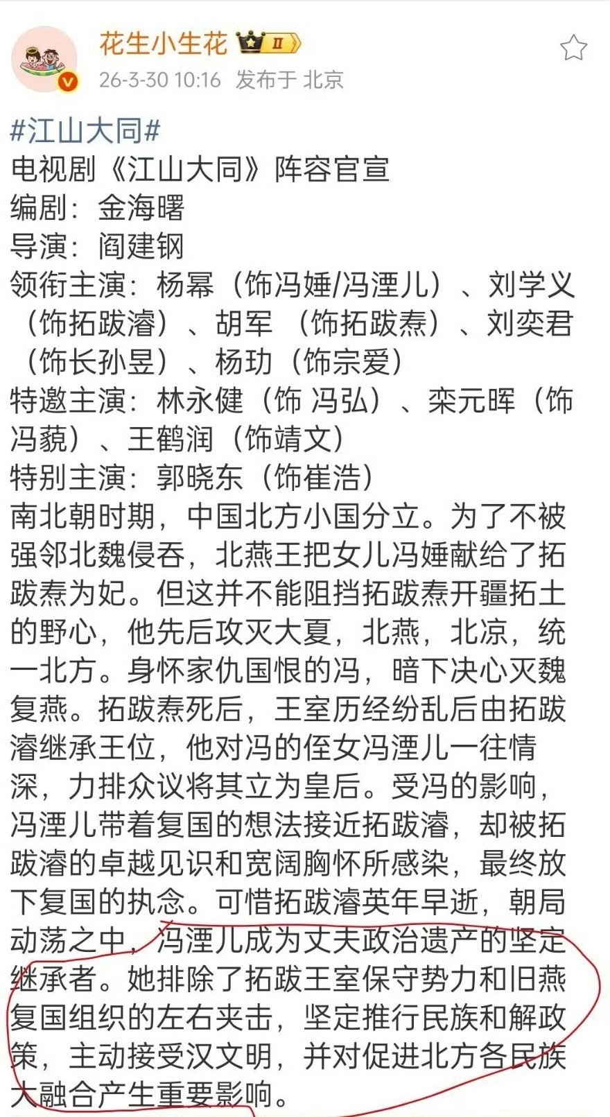 江山大同的剧情(杨幂饰演冯太后)疑似和唐嫣的锦绣未央一模一样,85花又联动了?