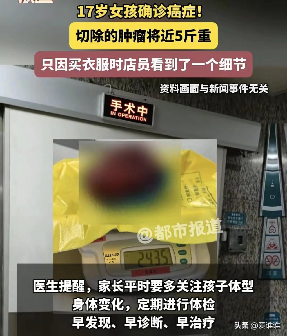 2025年6月,广东汕头,17岁的高二女孩婷婷,她个子一米六出头,体重才八十多斤,看着很瘦,平时总爱穿宽大的衣服,把肚子遮得严严实实,那段时间,她偶尔觉得肚子发胀、有点疼,但怕耽误学习,也不想让妈妈担心,就一直忍着没吭声。 周末婷婷跟妈妈出门买衣服,服装店老板娘很热情,帮忙挑了一条裤子让婷婷试穿,婷婷从试衣间出来后,老板娘蹲下帮她整理裤腰,手无意间碰到她的肚子,心里一下子紧了起来,这姑娘明明瘦得皮包骨,肚子却鼓得发硬,根本不是胖的,也不像胀气。 她认真地对婷婷妈妈说:“大姐,你闺女这肚子不对劲,硬邦邦的,赶紧带她去医院查查吧。” 妈妈仔细一看,心里也开始发毛,赶紧拉着婷婷去了医院,医生一摸肚子,脸色就变了,开了增强CT,结果出来,所有人都吓了一跳:婷婷右肾上长了一个直径27厘米的巨大肿瘤,快五斤重,把肝脏和肠道都挤得变了形,当地医院建议立刻转院,母女俩连夜赶到深圳。 深圳市第三人民医院的专家会诊后,决定马上手术,肿瘤跟血管、器官粘得很紧,婷婷的肾动脉还比常人多两根,手术风险极高,好在手术很成功,肿瘤被完整切了出来,几天后病理结果出来了,是良性的肾嗜酸性细胞瘤,不需要放化疗,好好休养就能恢复。 婷婷后来康复出院,重新回到学校,不得不说很幸运,一次普通的逛街,一句多嘴的提醒,换来的是一个花季女孩的平安!