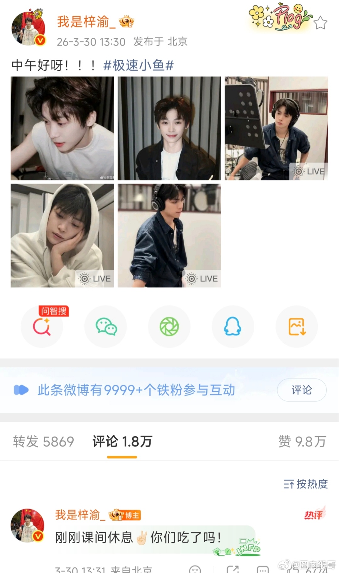 梓渝最新营业,极速小鱼在北京火热录制首张个人专辑中,期待这位亿时代的青年歌手!