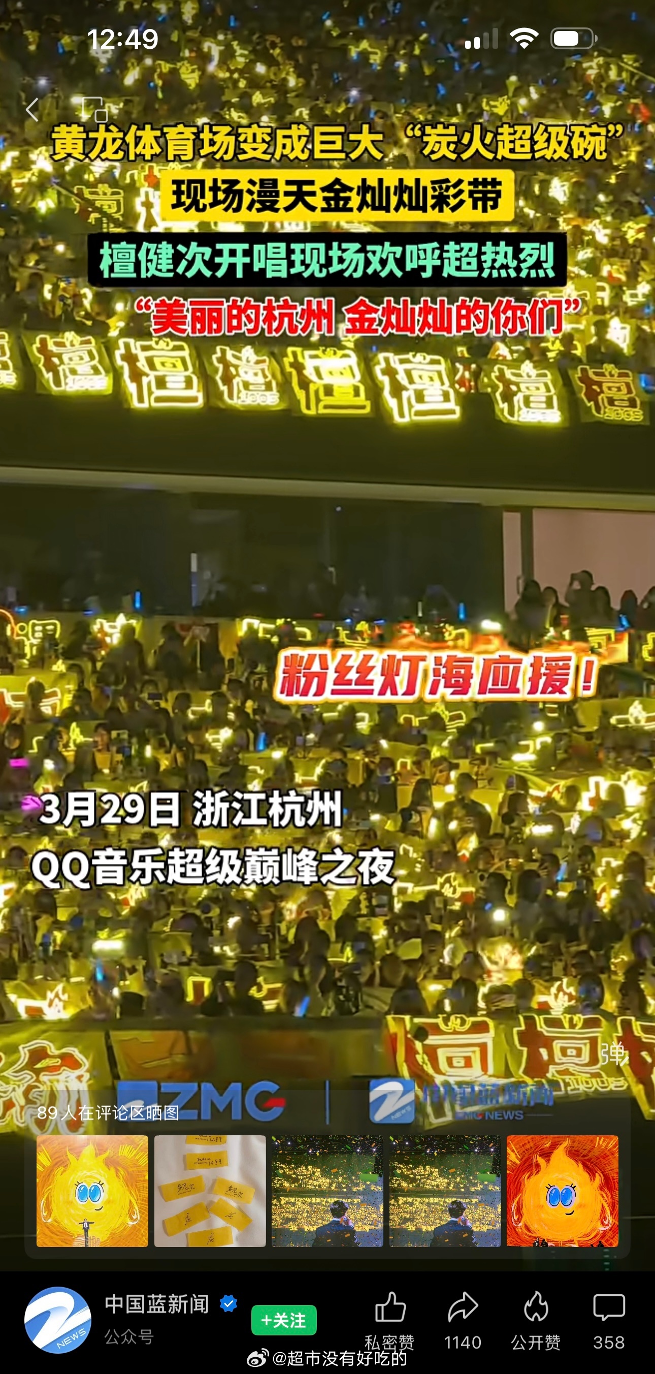 浙江官媒发的昨晚Q音巅峰之夜好会说:黄龙体育场变成巨大“炭火超级碗”新浪音乐官博也发了檀健次黄海小炭火变成炭火超级碗了哈😆檀健次檀健次