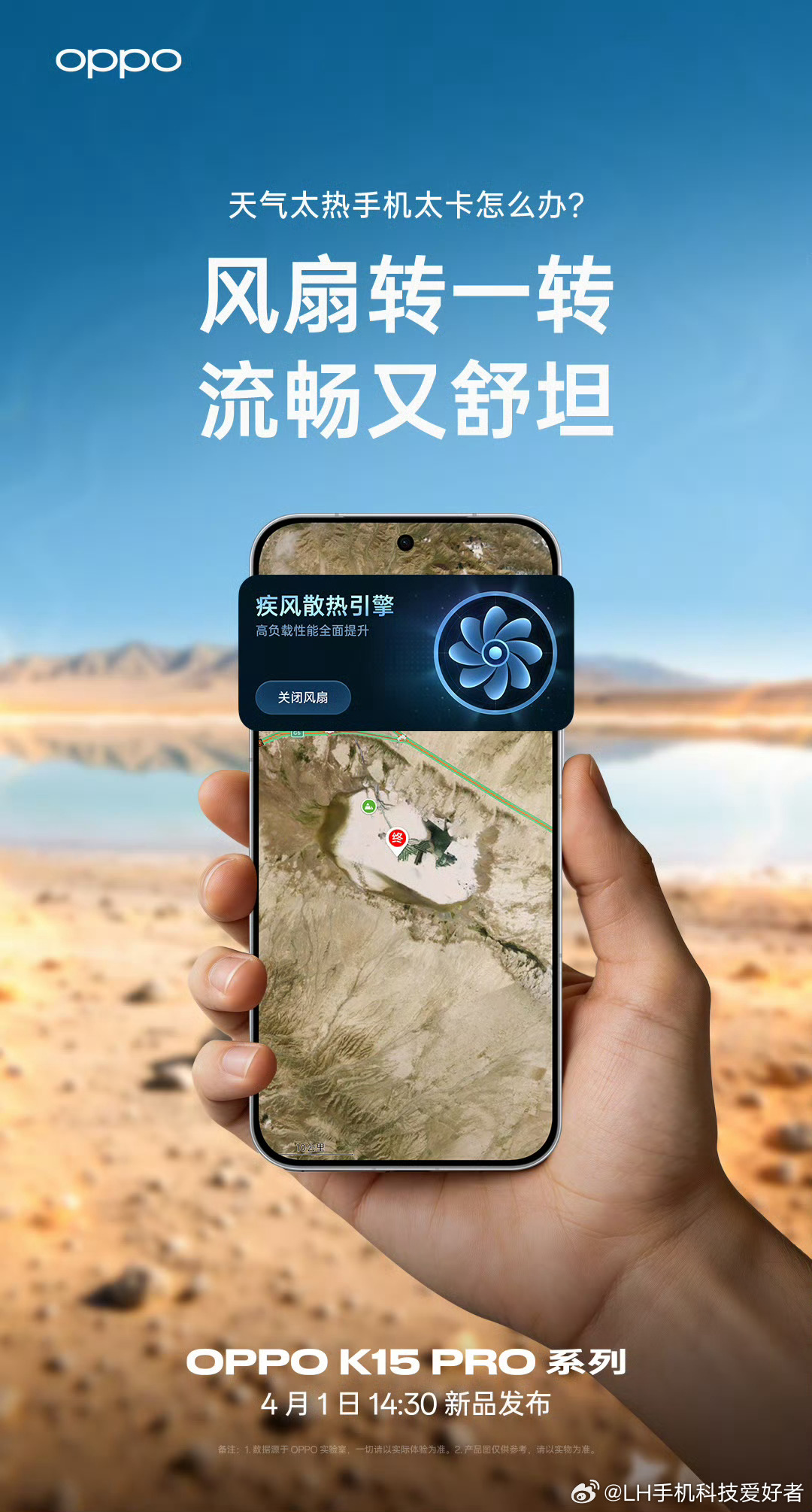 OPPO K15 Pro确认在4月1日发布,有散热风扇和金属中框,外观大家自己评