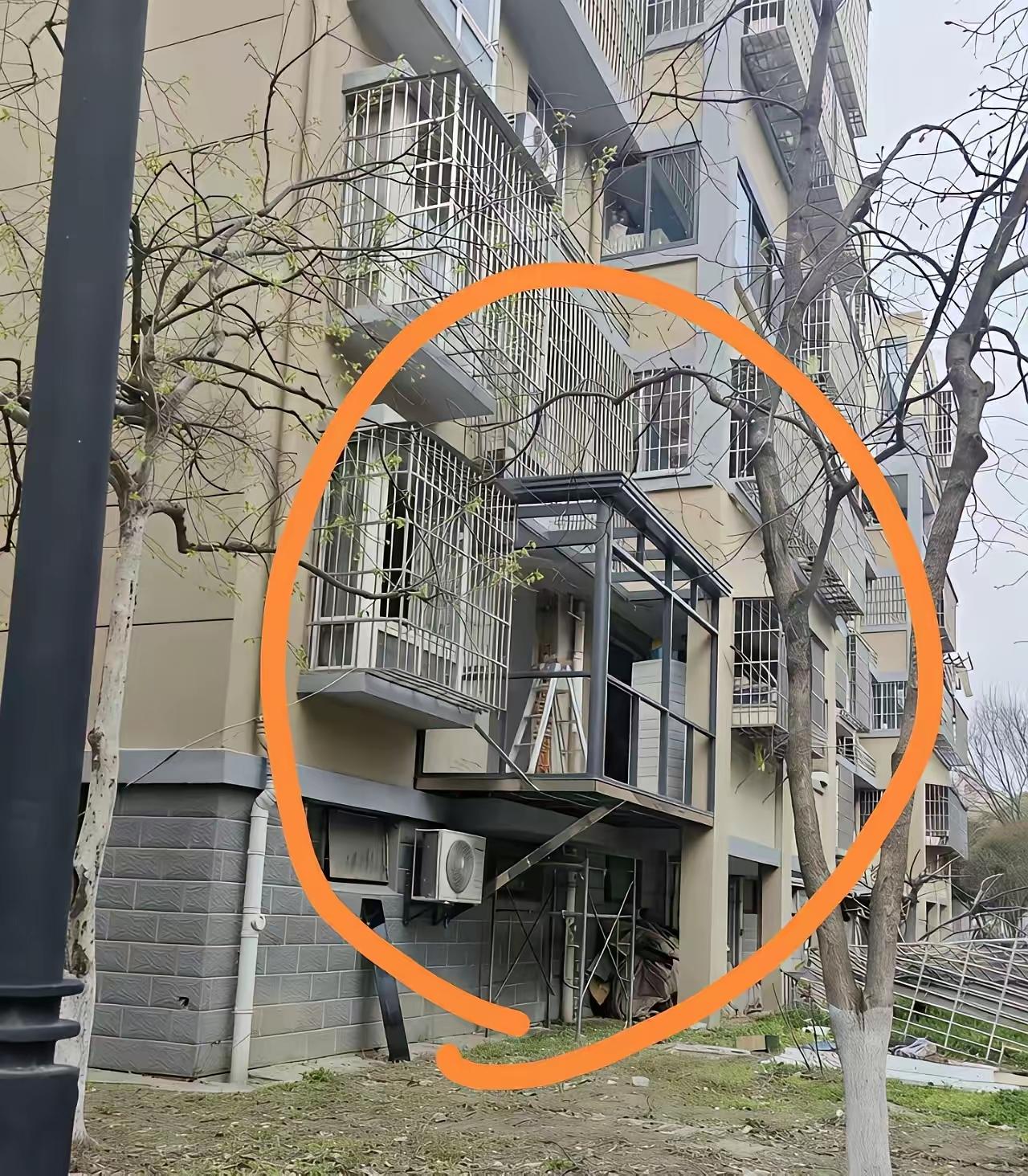 浙江嘉兴某小区,一位业主把自家阳台往外延伸了一米多,凭空多出至少两平米的使用面积