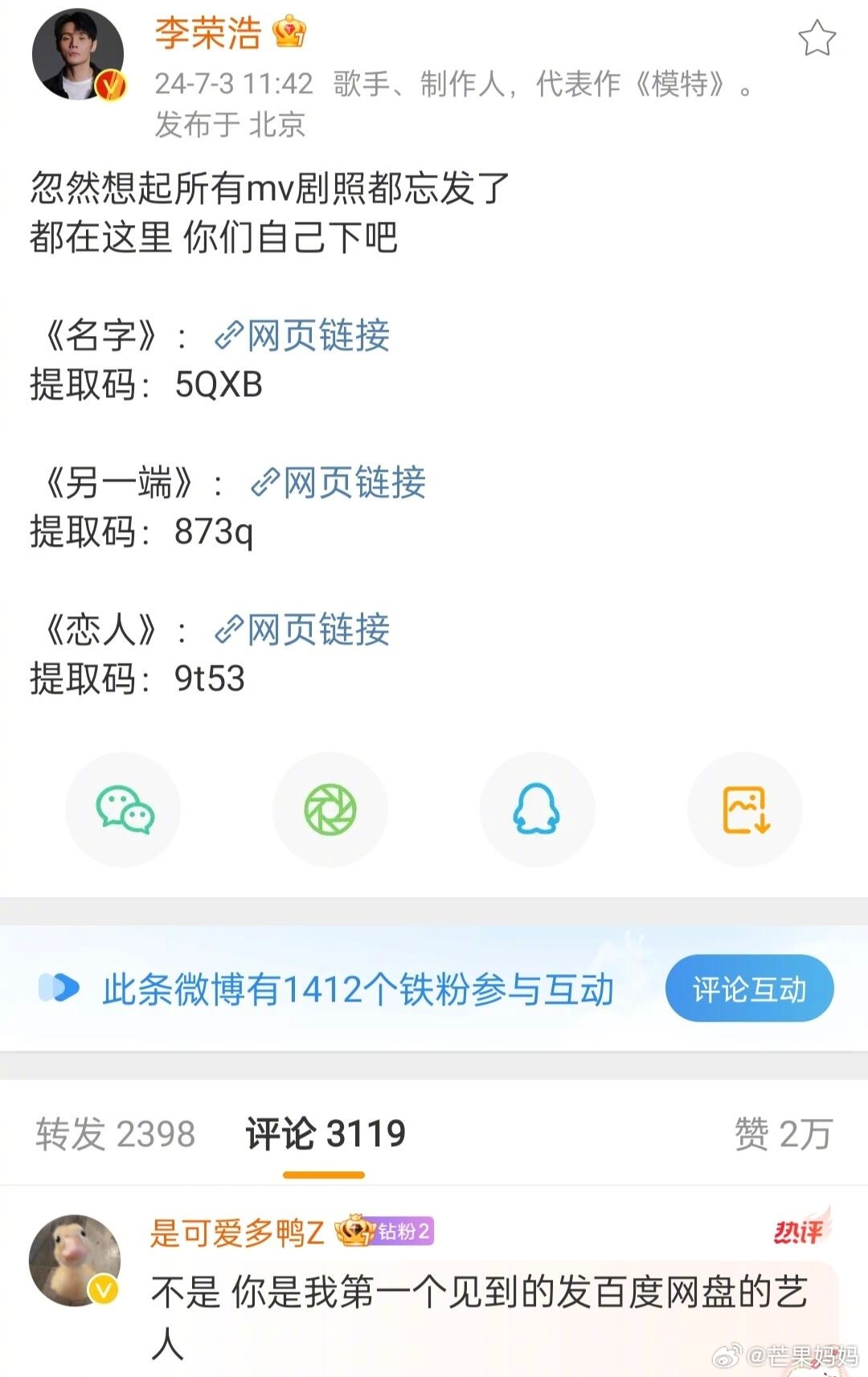 李荣浩战斗力强悍的原因李荣浩一直很有梗,之前还调侃诺一超大双眼皮跟自己眼睛一样大