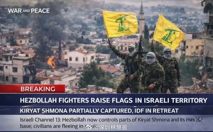黎巴嫩真主党拉德万部队突破了以色列的防线,在具有战略意义的以色列北部城镇基里亚特什莫纳升起真主党的旗帜。以色列第13频道证实,该镇部分地区及其主要的以军基地已被真主党控制。这也是首次出现以色列人口稠密地区落入真主党直接控制之下。在黎巴嫩真主党打击之下,以军正从基里亚特什莫纳地区的多个阵地撤退,以避免进一步伤亡。当地以色列居民更是如鸟兽散。