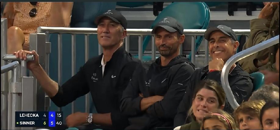 迈阿密公开赛收尾阶段有趣的一幕! 辛纳面对自己的冠军点,发出一个疑是好球,他都有点等不及了,举起双手庆祝起来了,不想裁判无情的喊出“擦网”,辛纳赶紧把自己的庆祝动作收了起来,这一幕直接把教练团队给逗乐了…… 该说不说,这次北美阳光双赛上辛纳的发球又比以前精进了不少,可他底线的跑动还有击打球的能力好像有所退步,这可能也跟他连续征战有关吧。 鉴于北美赛季如此多的体能输出,我不看好他接下去欧洲红土赛季的表现,可能接下去几个月更多要看阿卡的表现了!这几个赛季好像都是如此,辛纳拿几个冠军,累了,就阿卡拿几个冠军,循环往复,再中间其他优秀球员比如紫薇、梅总、弗里茨等偷一两个冠军,一年的atp赛事就这么结束了!