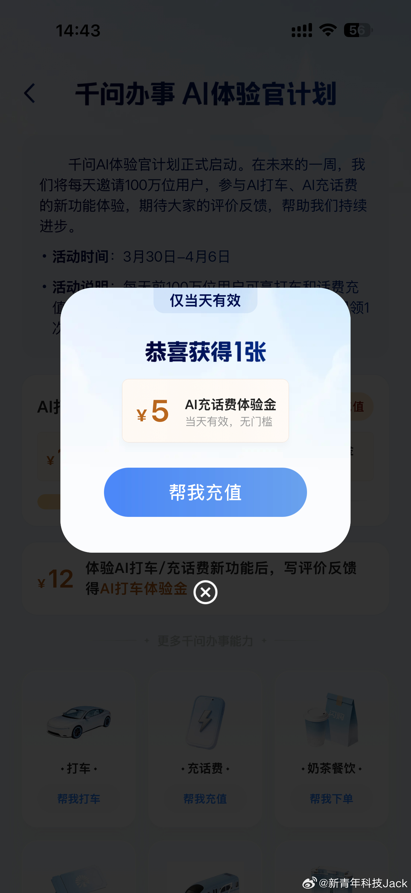 让千问帮你充话费可以50-5