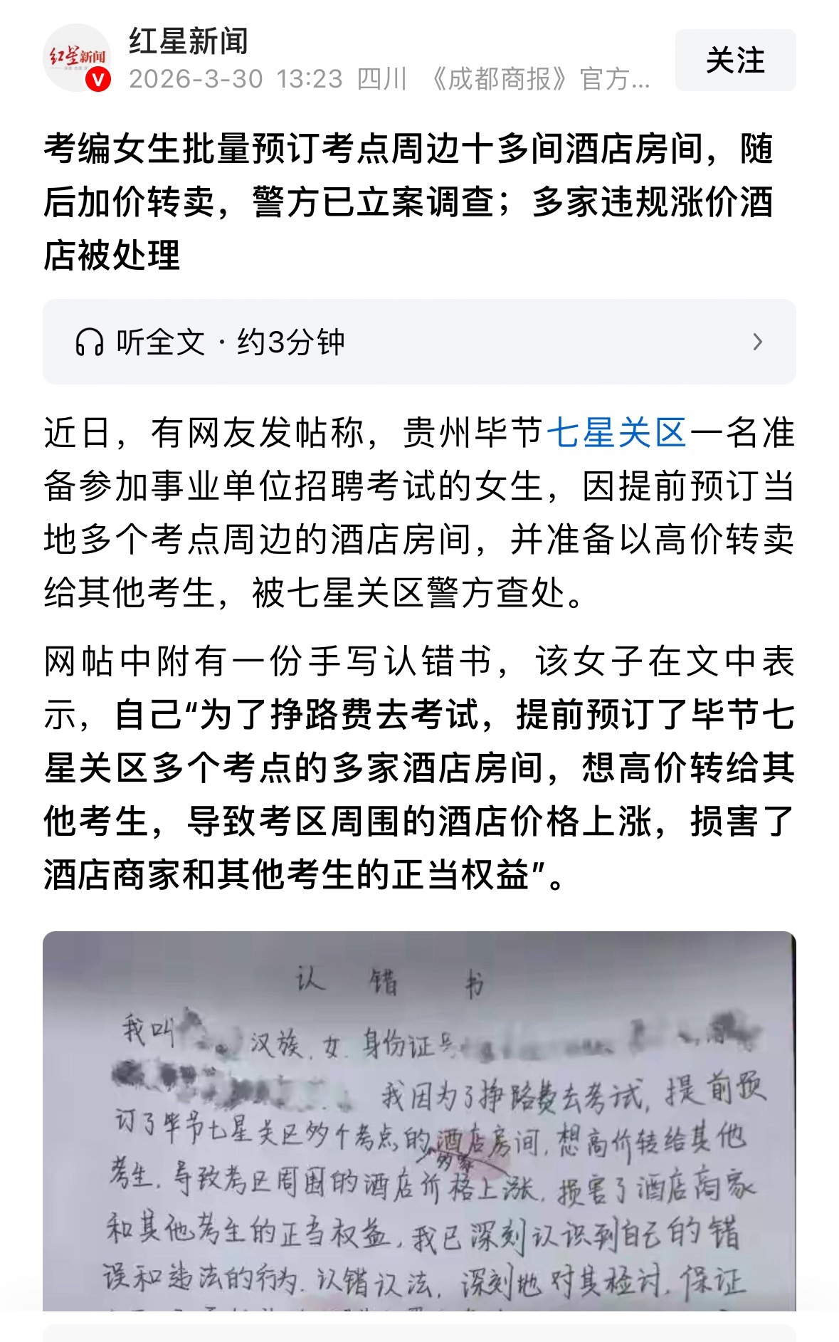 考编女生囤考点周边酒店当黄牛牛的。你这黄牛的生意忙起来还有空备考?这下子估计永远