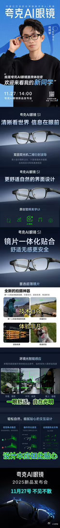 你们学霸届有自己的系统吧何同学的新搭档藏不住了,夸克 AI 眼镜久戴舒适不压鼻,云相册自动备份,记录生活灵感从不间断,太让人期待。