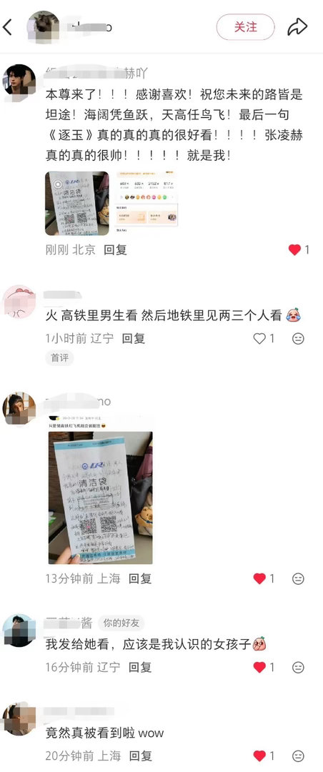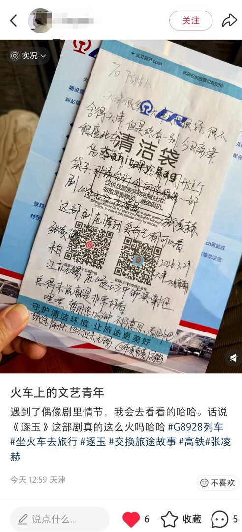 高铁社死后续来了!!在高铁上偷偷用清洁袋给陌生人写张凌赫小作文的姐妹,被看到了!