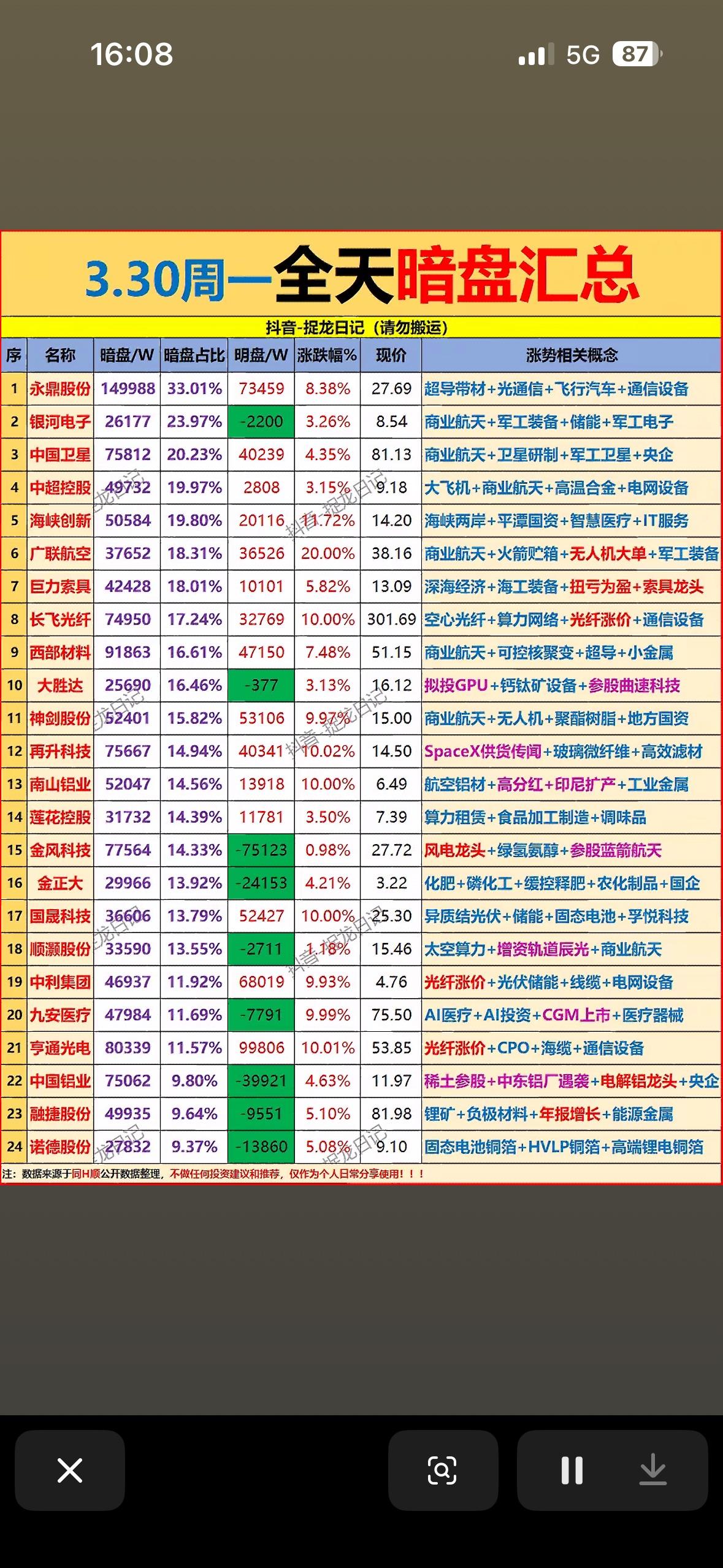 3月30日主力暗盘资金净流入前24名个股揭晓 3月30日沪深A股主力暗盘资金流向备受关注。当日,沪深两市表现不一,上证指数涨0.24%,报3923.29点,成交额8398亿元;深证成指跌0.25%,报13726.19点,成交额1.076万亿元。 收盘数据显示,主力资金流入前十的股票中,平潭发展以17.89亿元居首,亨通光电9.36亿元紧随其后。开盘一小时的数据里,平潭发展就已流入13.25亿元,航天动力流入5.52亿元。这些数据能反映出主力资金的偏好,对股民来说,是分析市场趋势、选择投资标的的重要参考,不知道后续这些股票又会有怎样的表现。