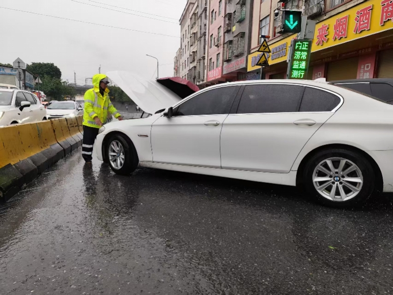暴雨中,番禺执勤交警顶风冒雨,不畏艰险,在积水路段、倒伏树干旁设置警示标志,引导过往车辆减速避让、有序绕行;对无法立即清理的倒伏树木,交警徒手清理断枝、合力挪移树木,全力打通受阻道路;在重点路口、易堵路段,交警坚守岗位,指挥交通、疏导车流,最大限度减少暴雨天气对交通的影响,保障市民出行安全和道路基本畅通。