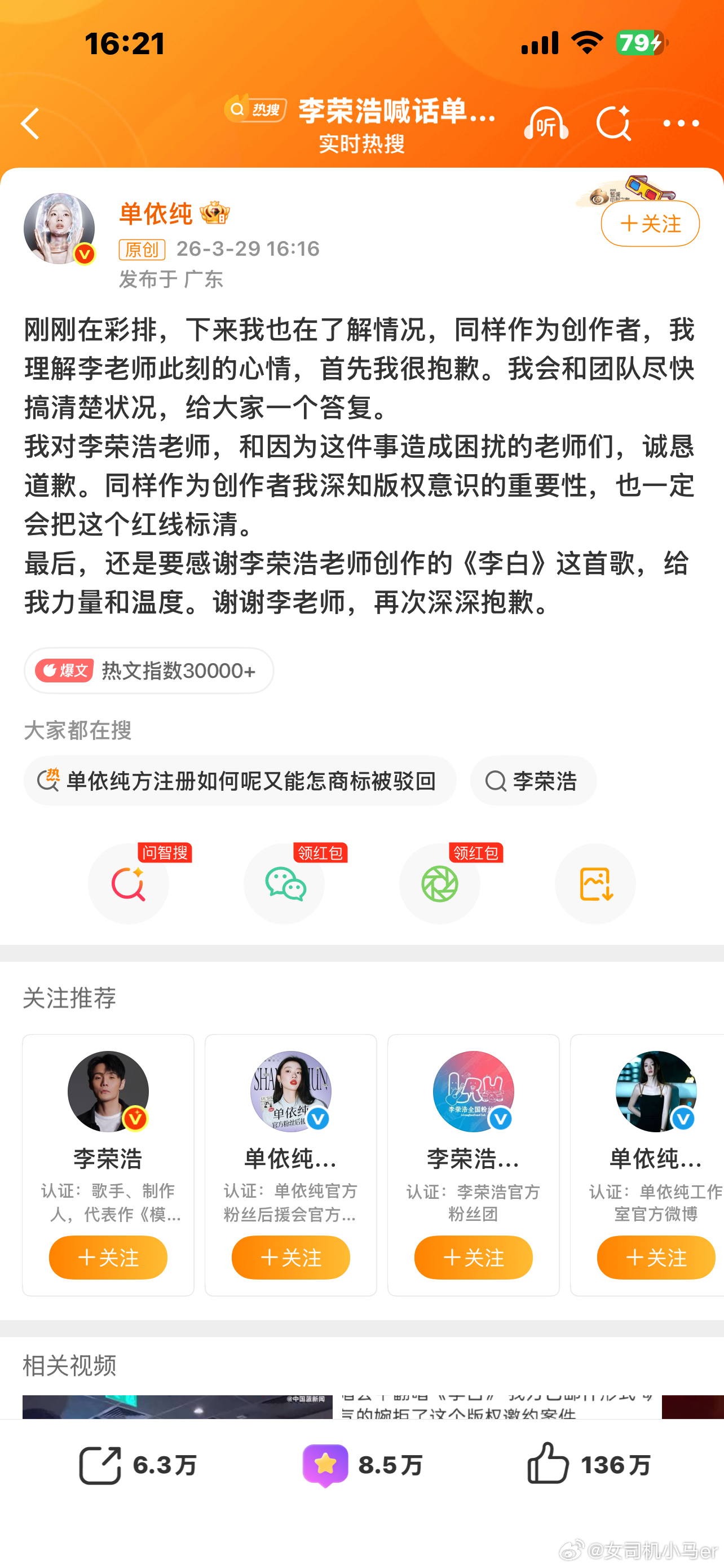 丁太升给单依纯的建议两篇道歉都看了,第一篇真的有点敷衍,感觉没太当回事儿似的。第二篇就诚恳多了。单依纯嗓子是真好,这没得说。但这件事暴露出来的问题跟唱歌无关:学艺先学德,做戏先做人,这句话老套但真不过时。希望这姑娘是真想明白了,不是被锤明白了